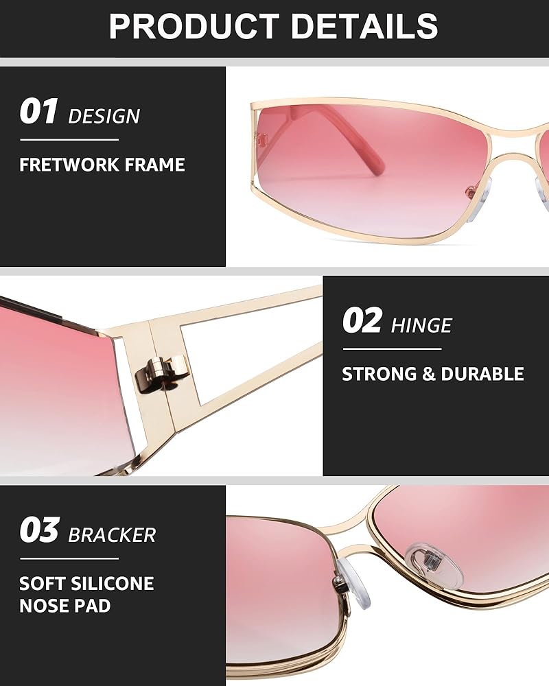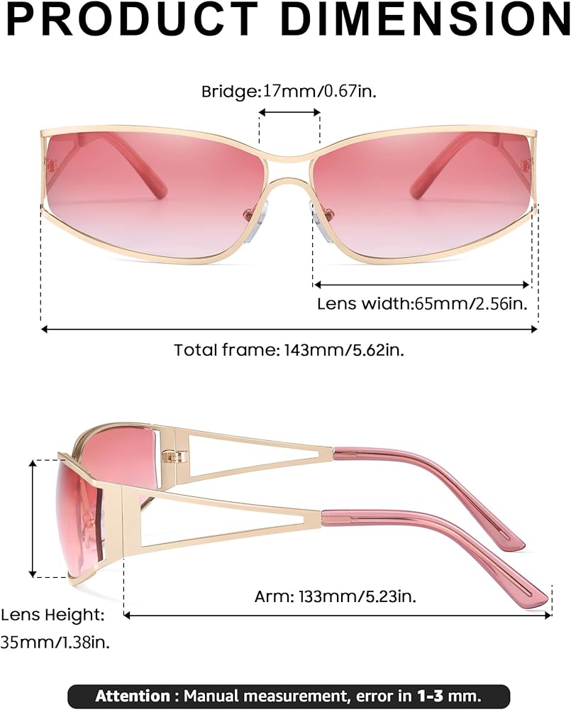 • إكسسوار Y2K: تضفي نظارات Y2K المعدنية هذه مظهرًا عصريًا، مما يسمح لك بعرض أسلوب عصري جريء وواثق. إنها الإكسسوار المثالي لإكمال مظهرك المستوحى من الطراز القديم.