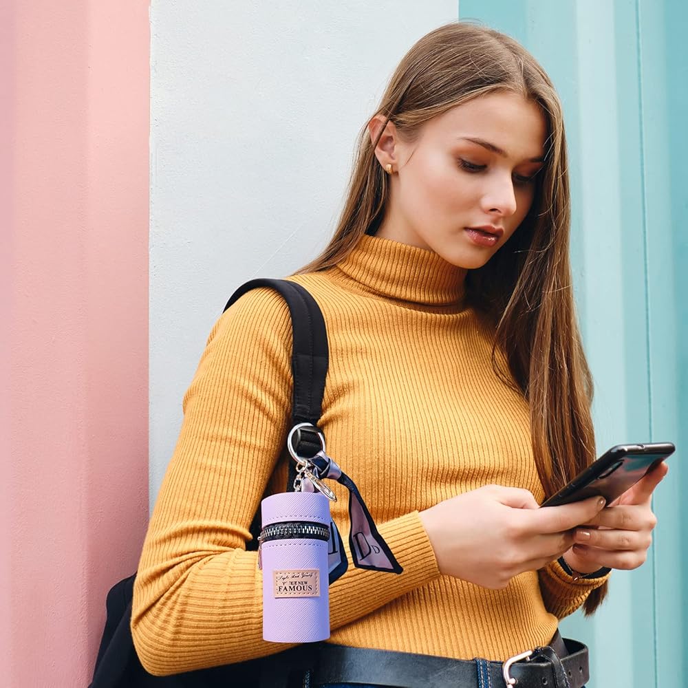 مريحة للحمل: تحتوي كل حافظة مرطب شفاه على حلقة مفاتيح، والتي يمكن أن تسمح لك بتعليقها على سوار معصمك أو مفتاحك أو حقيبتك أو محفظتك أو حقيبة الظهر وما إلى ذلك، سيوفر لك الحجم خفيف الوزن تجربة مريحة عند حملها، مما يجعل تأكد من أنك لن تفقد قلم الشفاه الخاص بك مرة أخرى. مناسب لأحمر الشفاه والأشياء التي يقل حجمها عن 2.75 بوصة/7 سم سم.