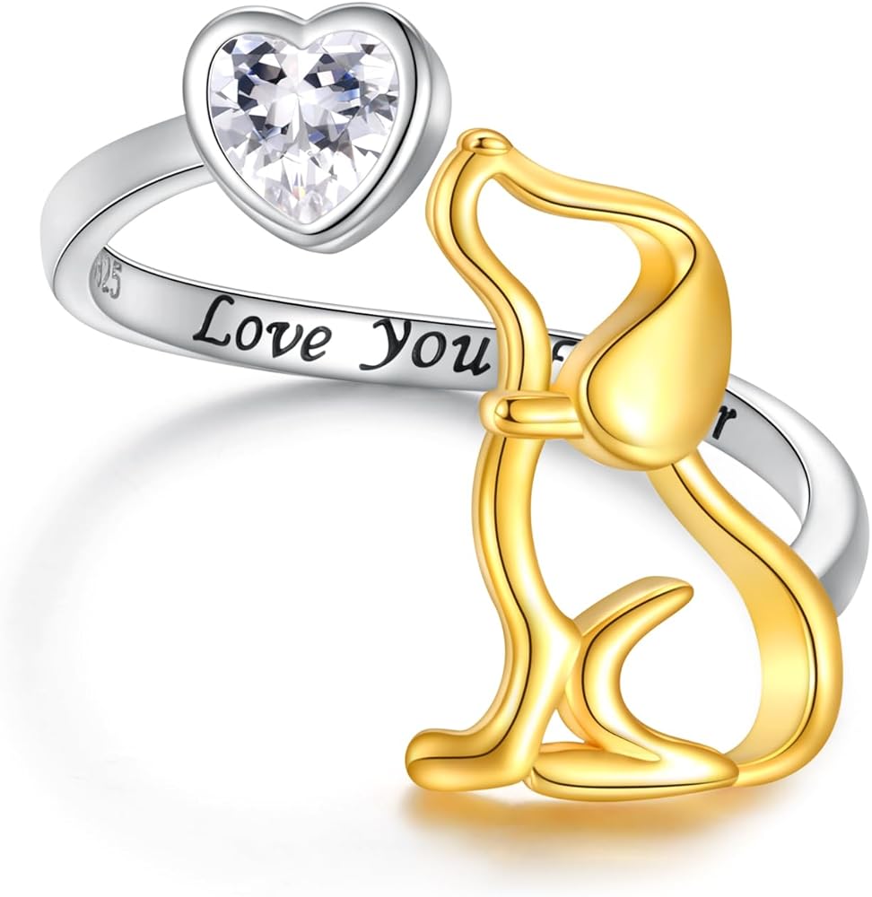 خاتم كلاب من الفضة الاسترلينية عيار 925 - خواتم على شكل قلب من الزركونيا المكعب، مجوهرات لطيفة للجراء والحيوانات الاليفة، هدايا لمحبي الحيوانات الاليفة للنساء والفتيات، فضي، زركونيا مكعب, فضة, مكعب