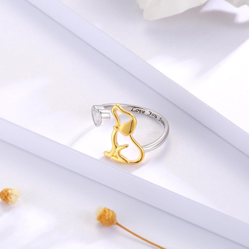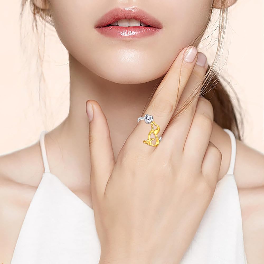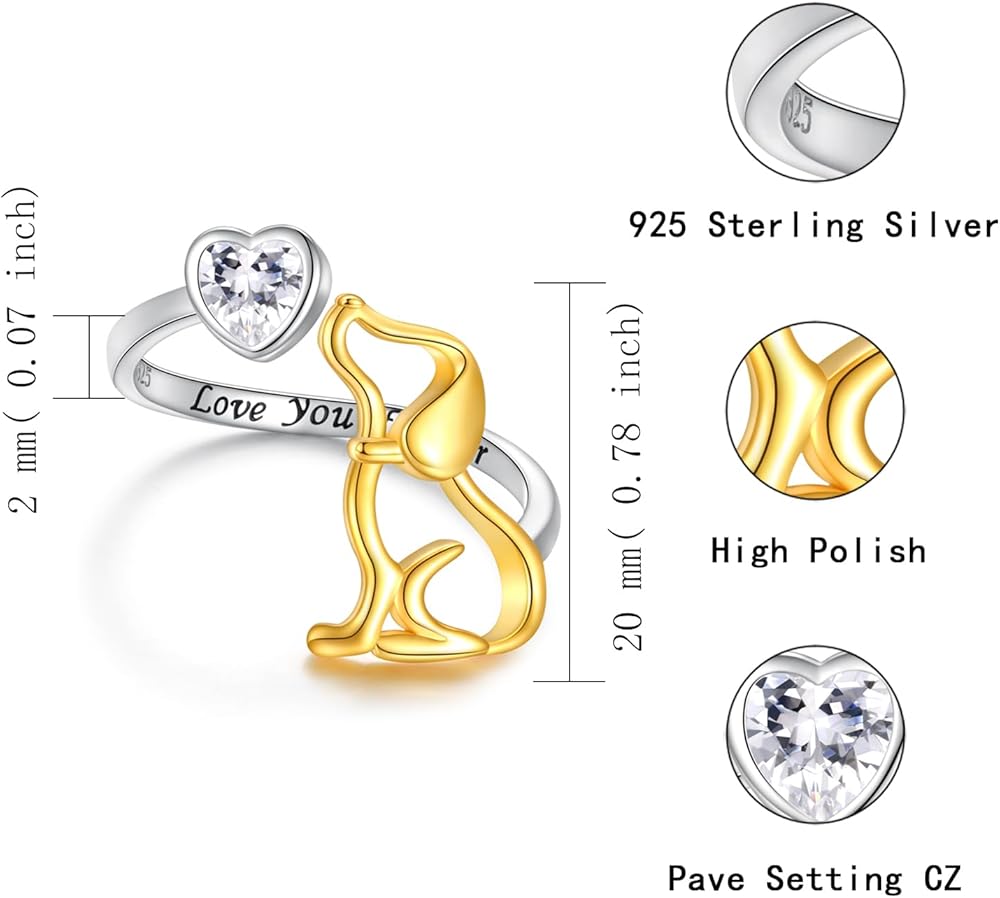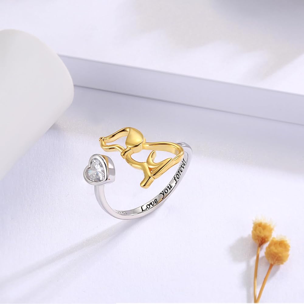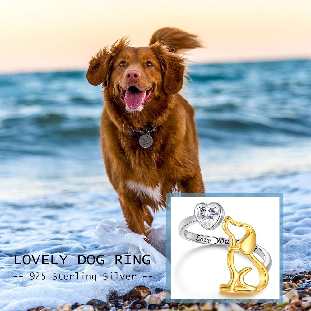 خاتم كلاب من الفضة الاسترلينية عيار 925 - خواتم لابرادور ذهبية قابلة للتعديل، مجوهرات رائعة على شكل حيوانات للجراء والجراء وهدايا الابنة للمراهقين ومحبي الحيوانات الاليفة