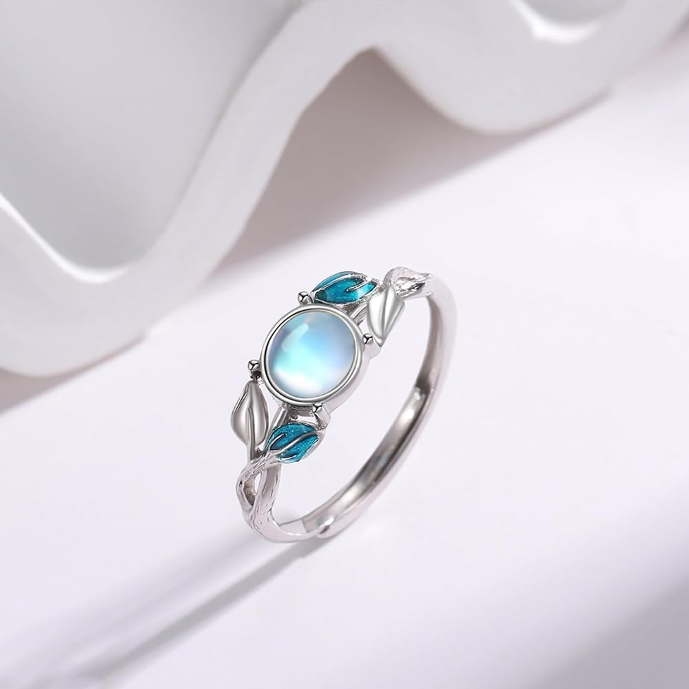 • 【s925 Sterling Silver Hypoallergenic Jewelry】💖The leaves open ring is made of real 925 sterling silver and moonstone. It's lead free ,nickel free ,non-allergic , they are hypoallergenic for sensitive skin, never worry about the moonstone leaf jewelry bothers you.
