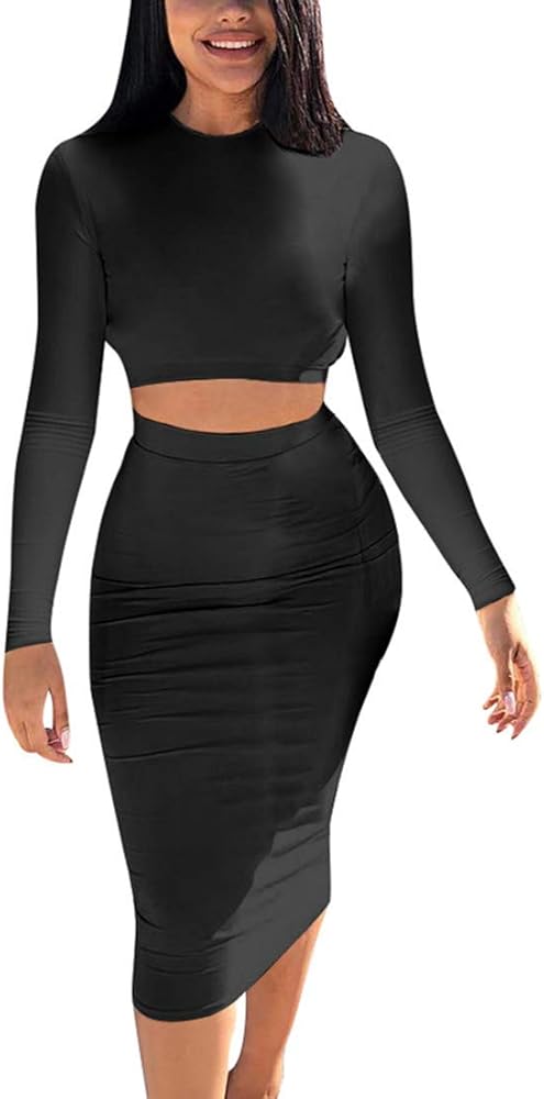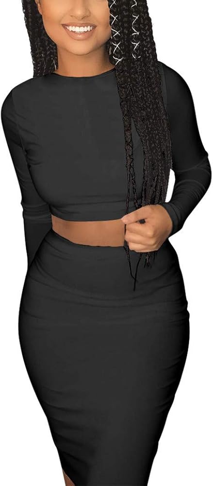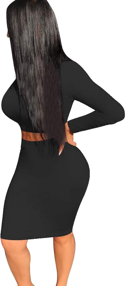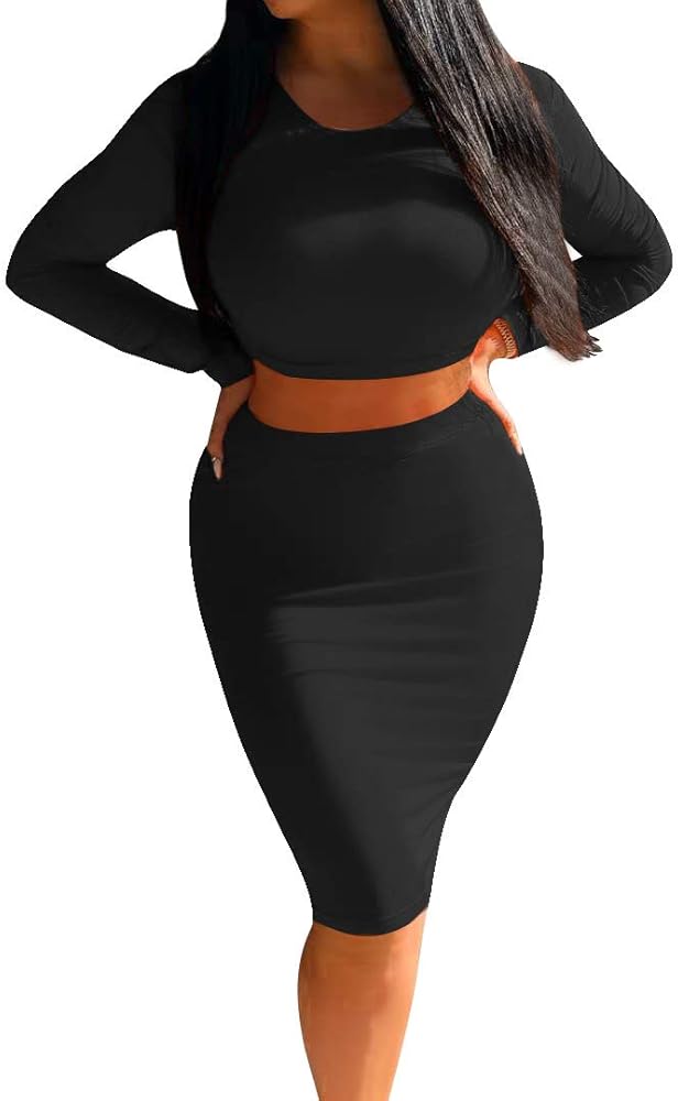 - التصميم: مجموعة بلوزة قصيرة بأكمام طويلة وتنورة متوسطة الطول، فساتين من قطعتين، كلاسيكي بسيط، فستان ضيق أساسي كاجوال، مناسب كالقفاز