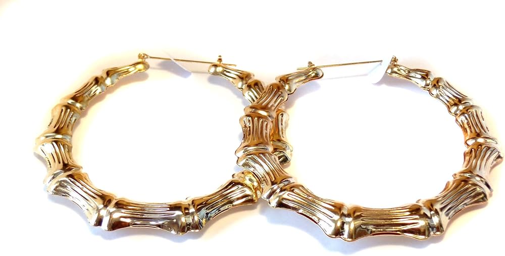 اقراط حلقية كبيرة 3.5 انش بلون ذهبي من الخيزران، اقراط حلقية للمدرسة القديمة