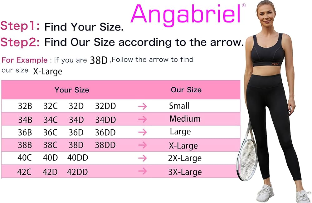 ✅ ارجع إلى جدول المقاسات الخاص بنا في الوصف أدناه لضمان حصولك على المقاس المناسب لجسمك. نريدك أن تشعر بالثقة والراحة مع حمالة الصدر الرياضية ANGABRIEL.