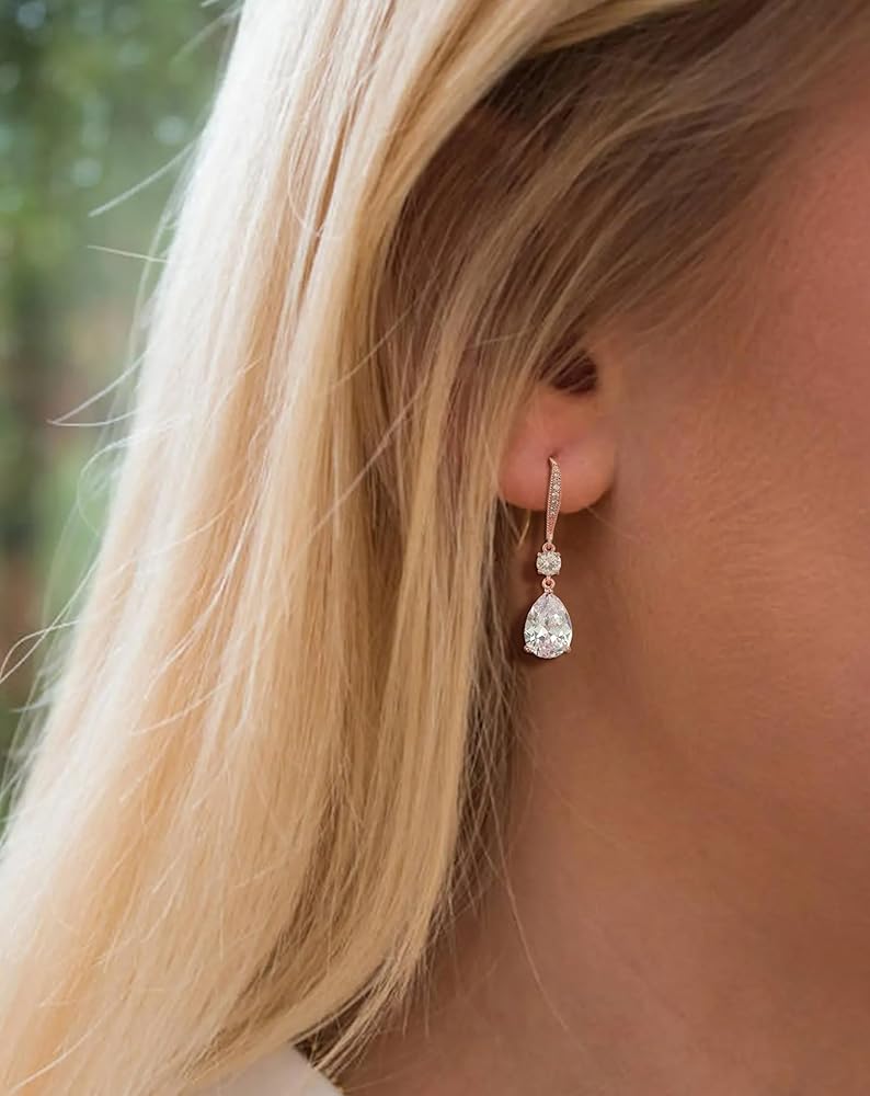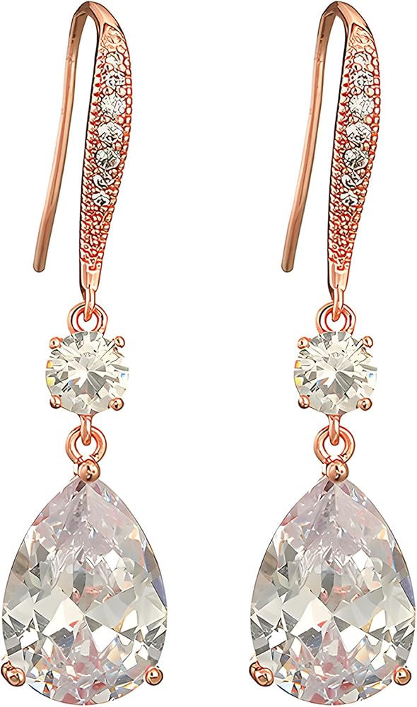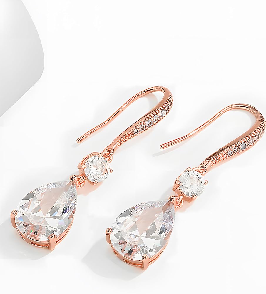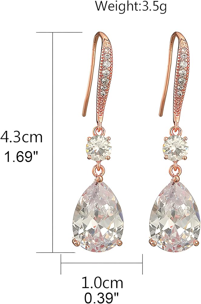 Name: Deerllia Drop Dangle Earrings for Women, Pear Cut Cubic Zirconia Long Teardrop Wedding Bridal Earrings, Silver Rose Gold Plated Copper Brass Micro Inlay CZ Gorgeous Plain Simple Fine Jewelry Gifts Box