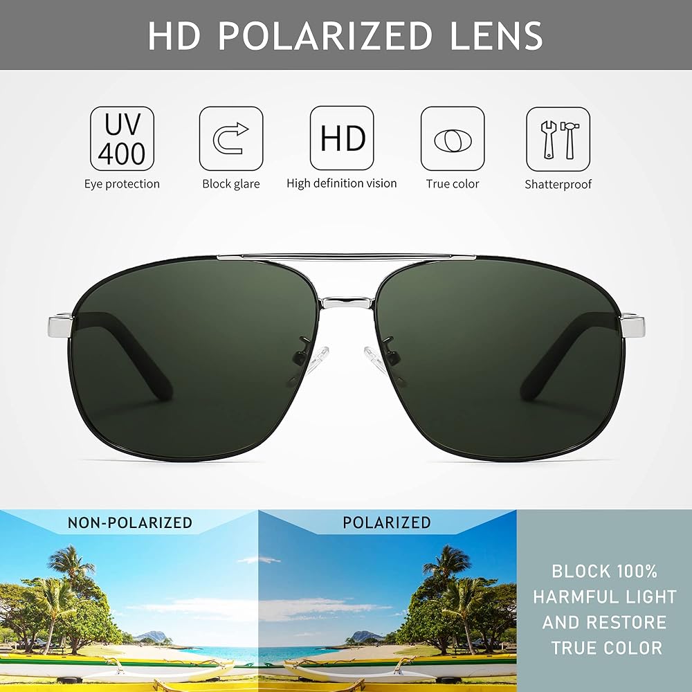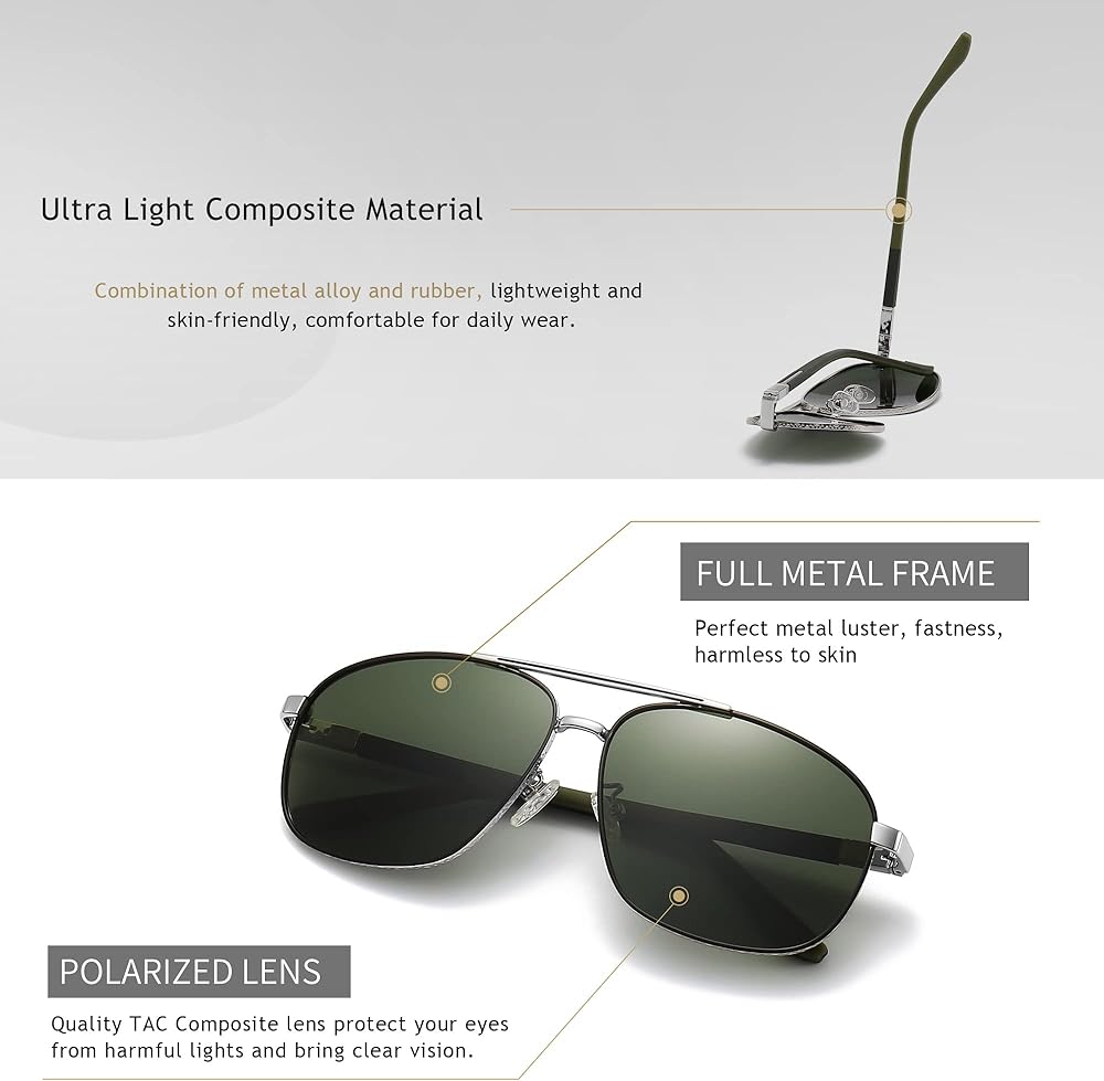 طراز كلاسيكي متطابق تمامًا - تصميم الإطار المربع هو طراز عصري كلاسيكي ودائم للرجال، الطراز المستطيل الكبير مثالي للوجه القياسي والكبير. نظارات ظلال الشمس هذه مناسبة للسبعينيات والثمانينيات والتسعينيات.