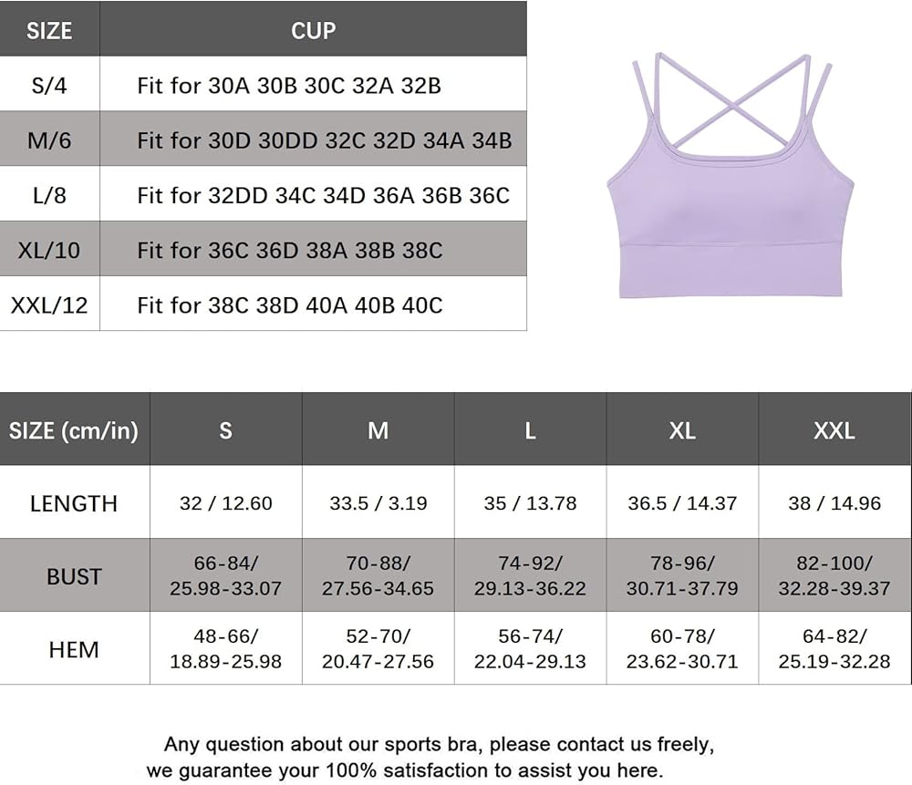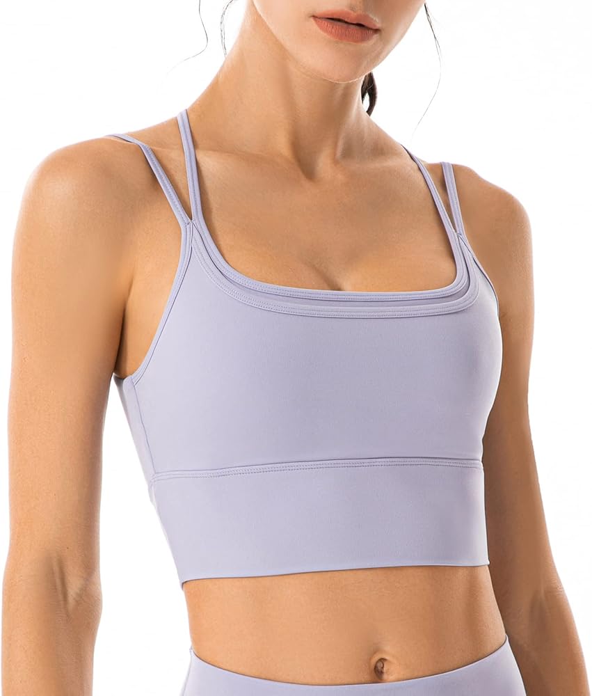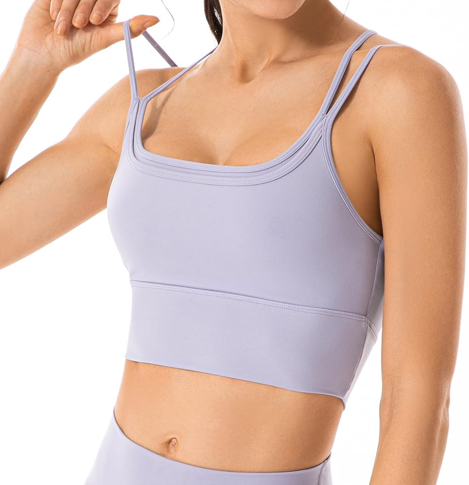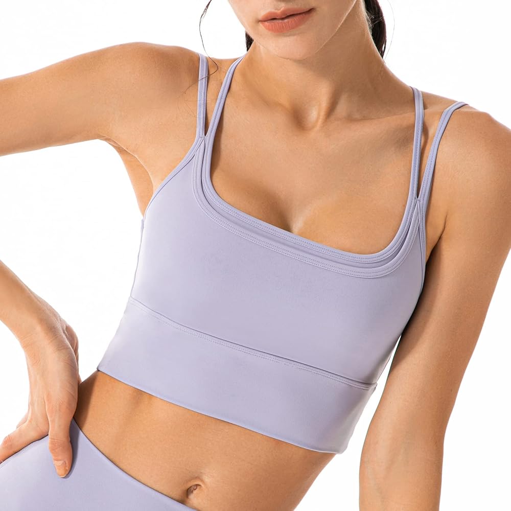 Built in bra: Padded sport bra with removable pads allows you to adjust the effect according to different needs. Lemedy Crop workout bras with removable pads, intended to provide light to medium support for a A/B/C cup. For extra support and coverage. All day comfort bra,double layer fabric provide full coverage and support.