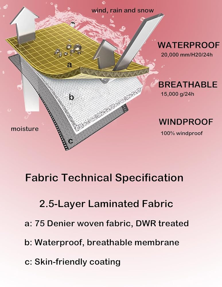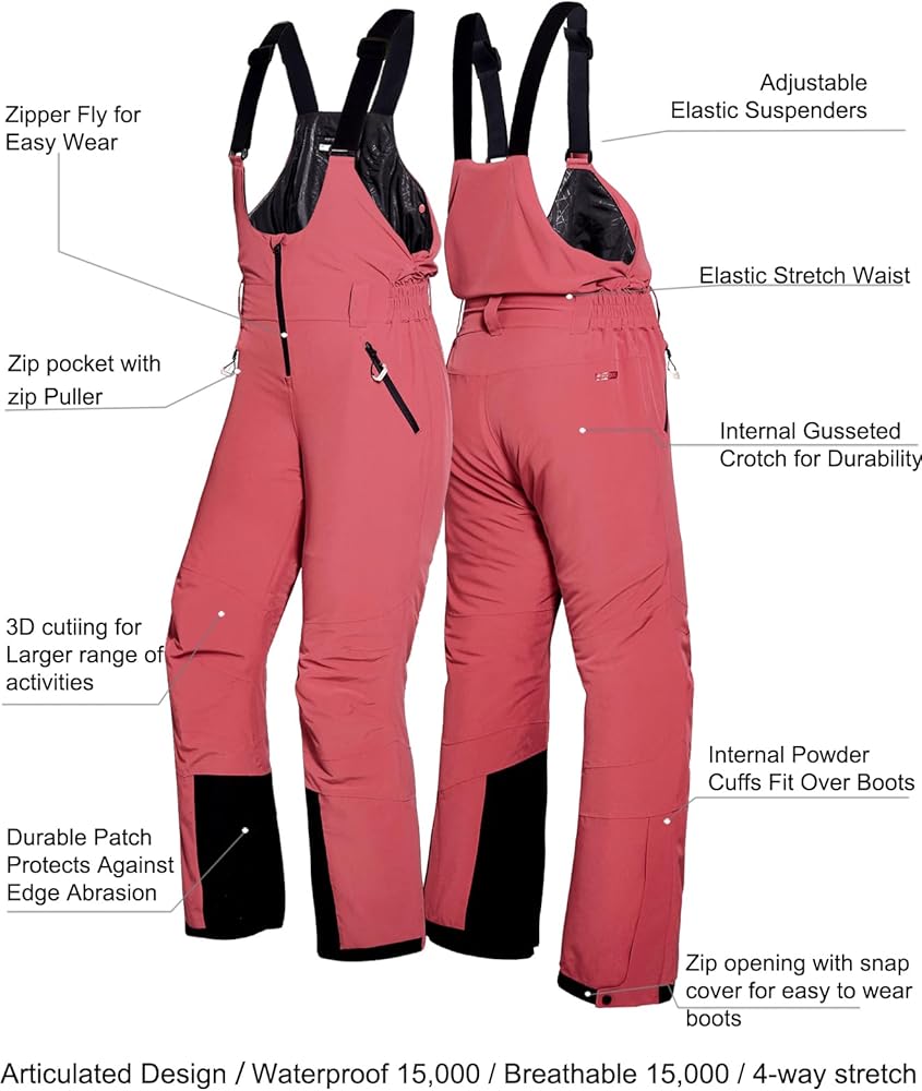 مريلة تزلج نسائية معزولة بمقاس عادي مع نسيج مطاطي في 4 اتجاهات. نسيج متين مقاوم للماء وجيد التهوية مع تصنيف مقاوم للماء يصل إلى 15,000 مم/ارتفاع 20/24 ساعة، طبقات كاملة محكمة الغلق توفر حماية إضافية من الرياح والمطر، 85 جرامًا من العزل للحماية من درجات الحرارة من -20 إلى +35 بوصة.