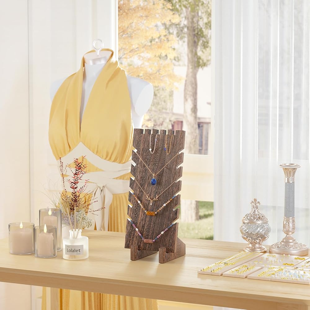 سلسلة عرض المجوهرات الخشبية من Lolalet، أساور وأساور وخواتم ومجوهرات تقف قائمة بذاتها من الخشب الطبيعي حامل مجوهرات لبيع متجر البائع - عبوة واحدة، قلادة