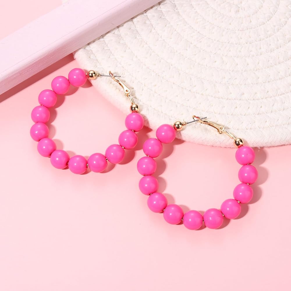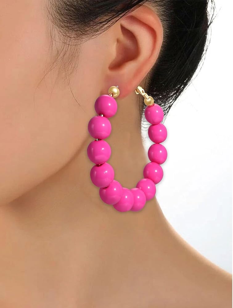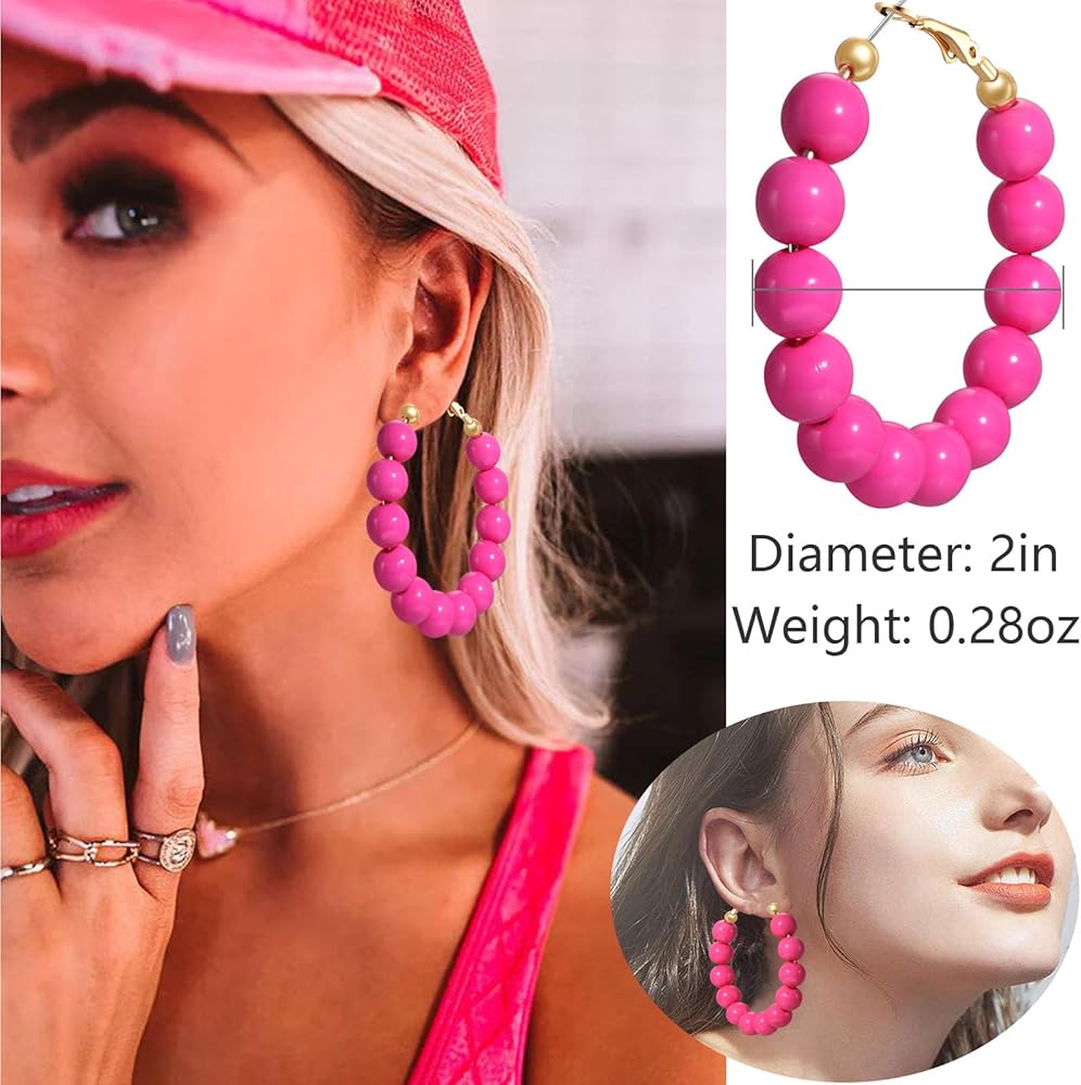 • أقراط وردية نيون - أقراط وردية نيون لامعة عصرية ومختلطة للنساء في حفلات الثمانينات، ستكون قطعة جيدة تجذب انتباه الآخرين أو أصدقائك. يتميز هذا الزوج من الأقراط الطوقية المطرزة بـ 12 قطعة مطرزة متشابكة في حلقات كبيرة يتم إغلاقها بحلقة واحدة في النهاية، خفيفة الوزن للغاية، لا تثقل أذنيك عند ارتدائها، مناسبة لمعظم النساء والفتيات لارتدائها. القطر تقريبًا. 2.17 بوصة (5.5 سم)، الوزن: 0.28 أونصة لكل قطعة.