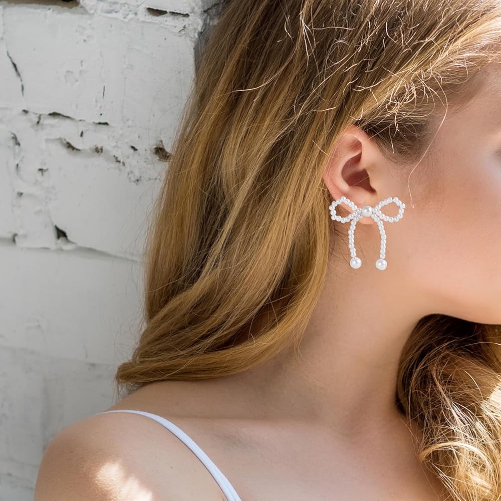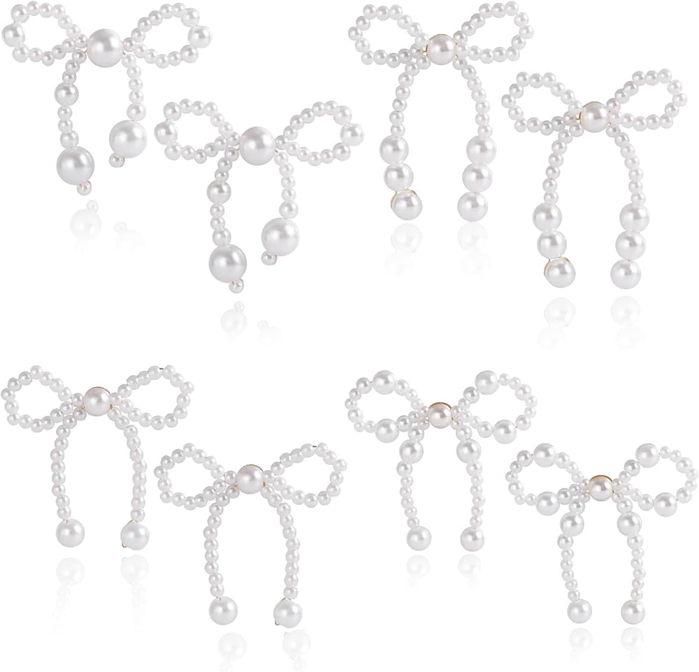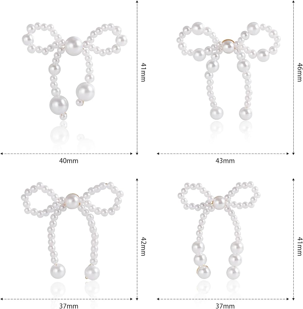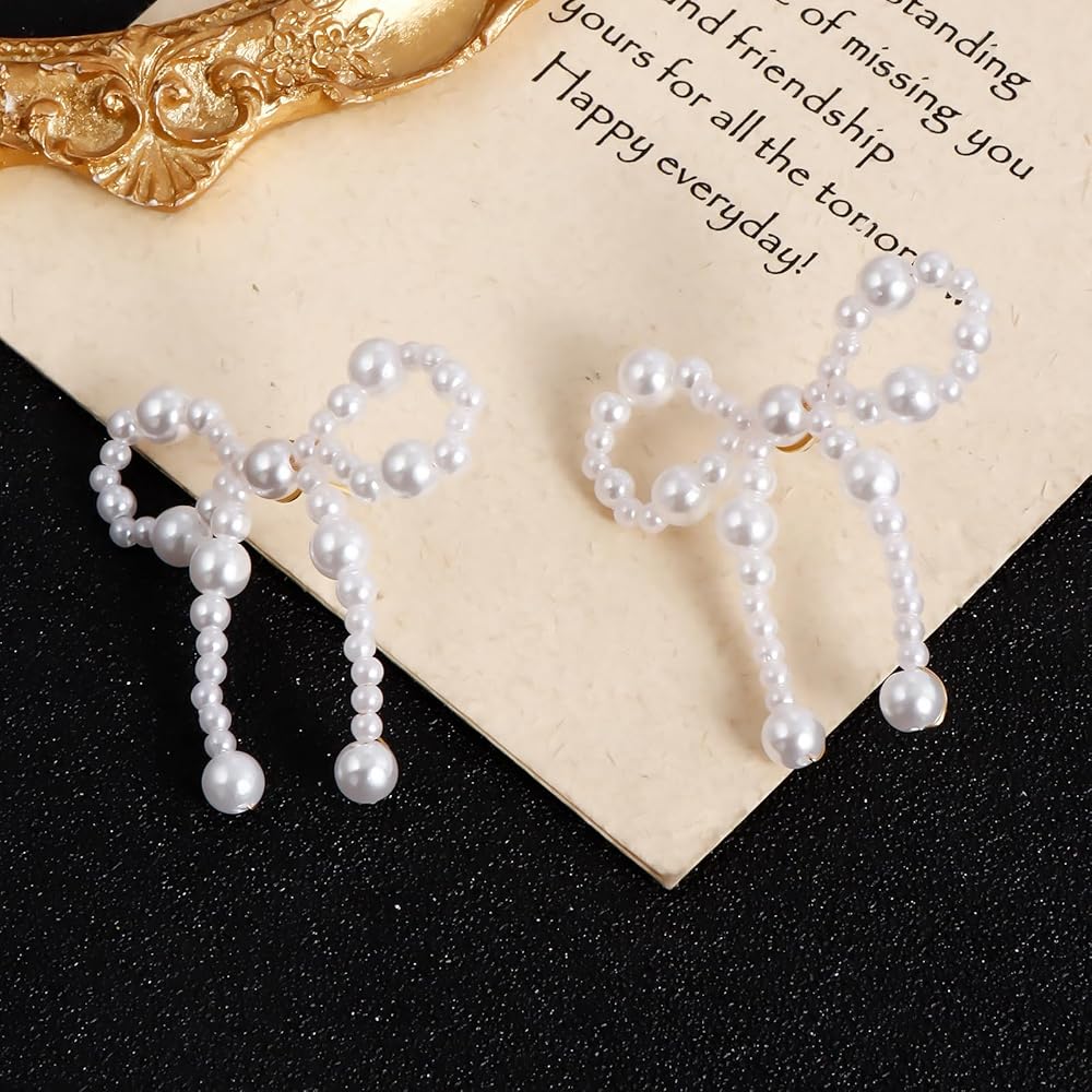 تصميم القوس--هذه الأقراط القوسية هي تصميم على شكل عقدة فيونكة، القوس اللؤلؤي يجعلها تبدو أنيقة للغاية وأنيقة، عبوة واحدة تحتوي على 4 أزواج من الأقراط القوسية اللؤلؤية، خيارات كافية لاحتياجاتك المختلفة.