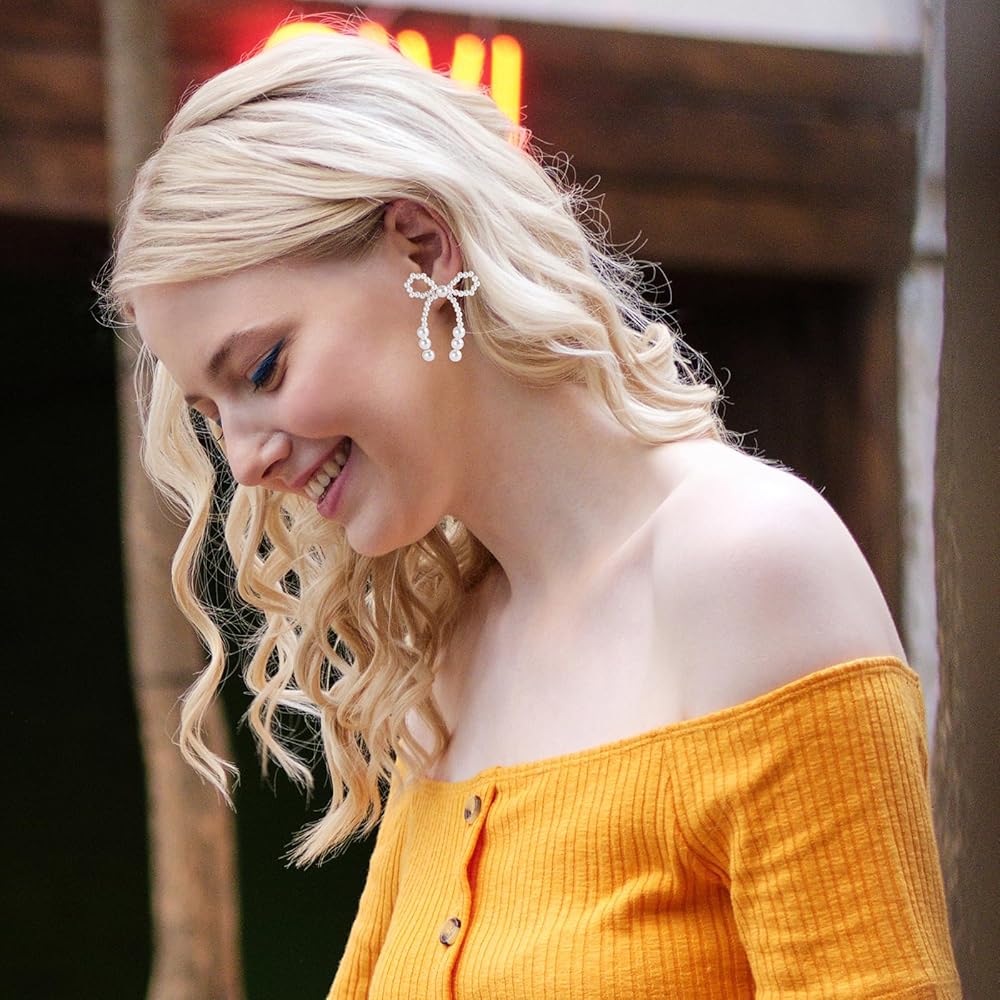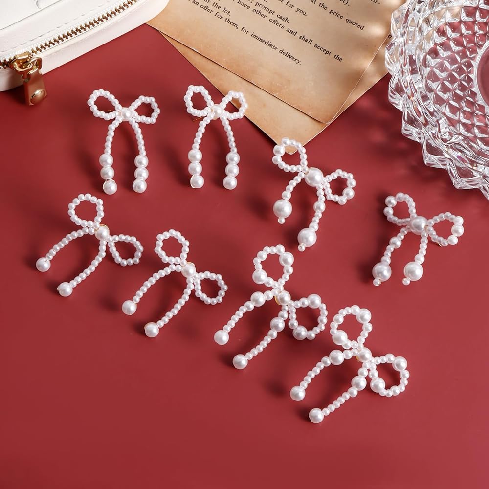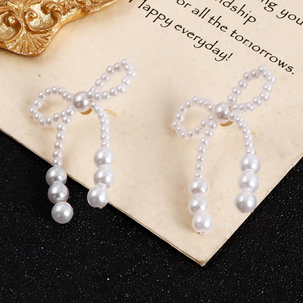 تصميم القوس--هذه الأقراط القوسية هي تصميم على شكل عقدة فيونكة، القوس اللؤلؤي يجعلها تبدو أنيقة للغاية وأنيقة، عبوة واحدة تحتوي على 4 أزواج من الأقراط القوسية اللؤلؤية، خيارات كافية لاحتياجاتك المختلفة.