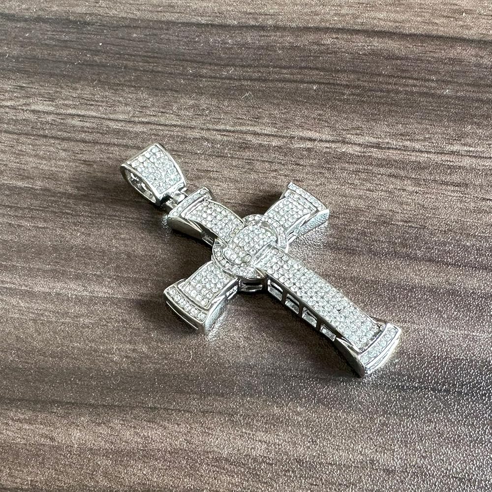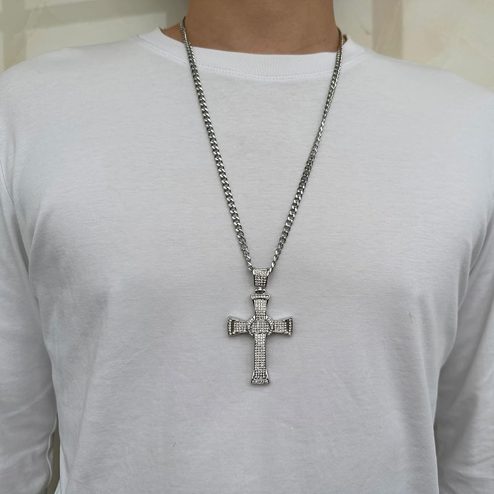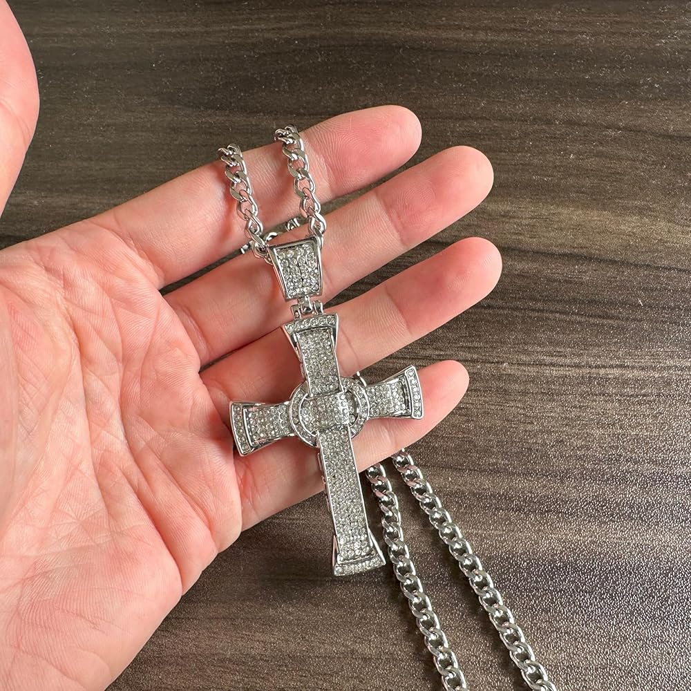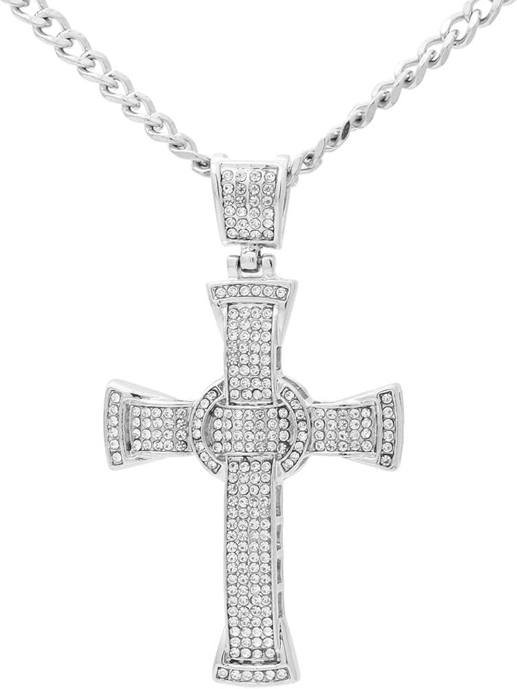 رجل وامرأة الهيب هوب مثلج خارج أحجار الراين قلادة سبيكة ضخمة الصليب قلادة قلادة