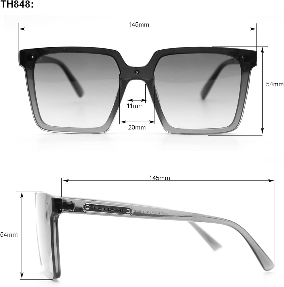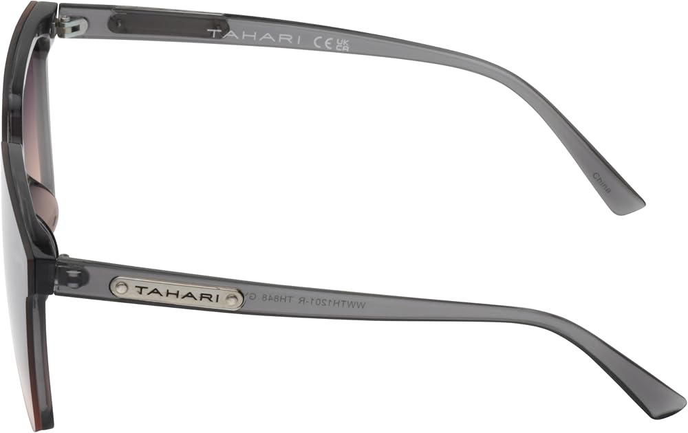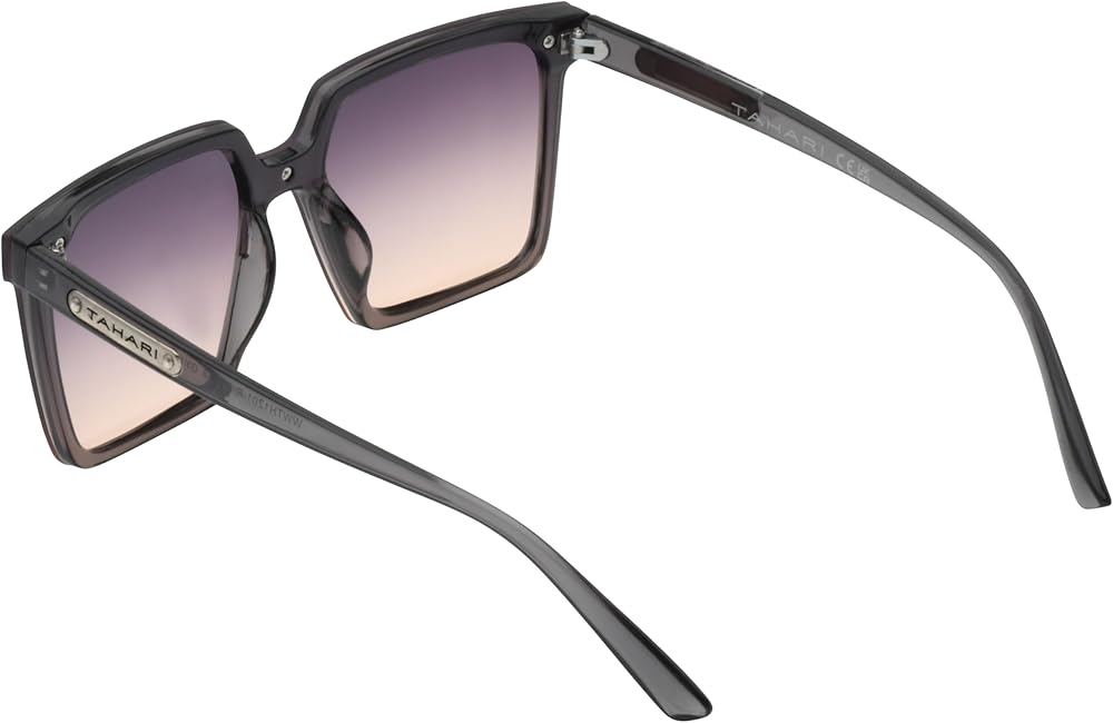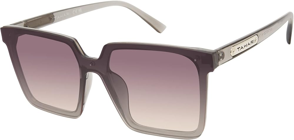 TAHARI DEFINES MODERN SOPHISTICATION: You're sure to receive lots of compliments wearing these oversized TAHARI square sunglasses for women, made of a lightweight translucent crystal polycarbonate material with a shield lens that is a seamless style with 100% UV protection and metal TAHARI temple logo. Timeless Elegant Gifts for Ladies.