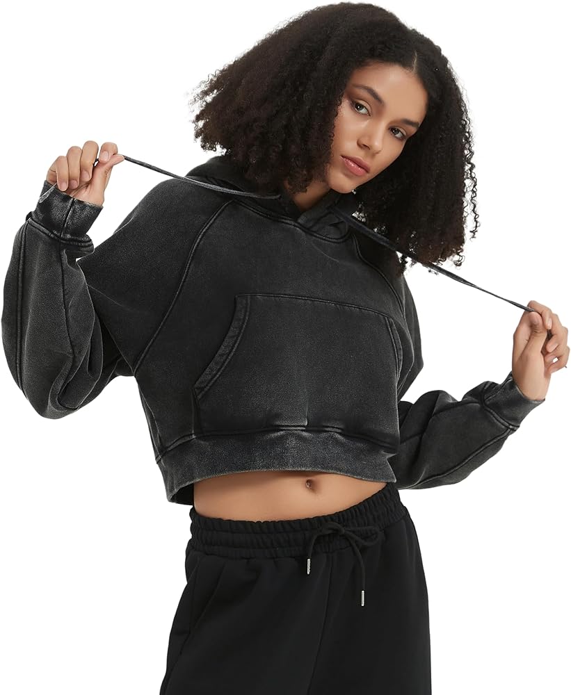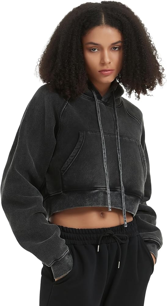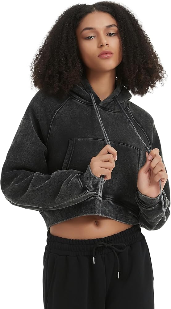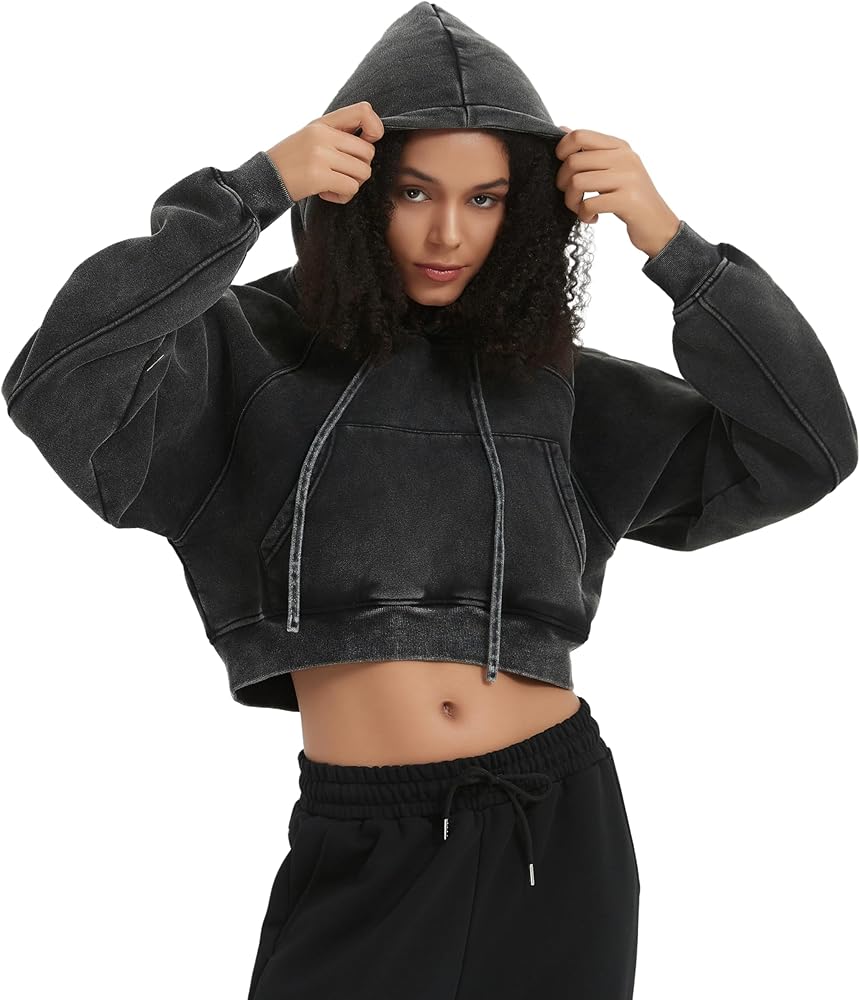【LOOSE FIT HOODIE】Retro Wash sweatshirt, Short hoodie for women,Premium fleece hoodie long sleeve sweatshirt, basic solid jumper shirt, drop shoulder short hooded jacket, kangaroo pocket pullover with ribbed cuffs.