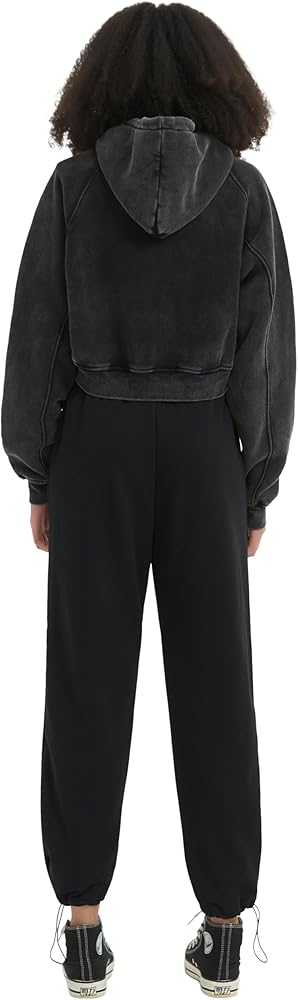 Retro Wash Solid Basic Short Hoodie for Girls Women Basic Solid Loose Long Sleeve Sweatshirt