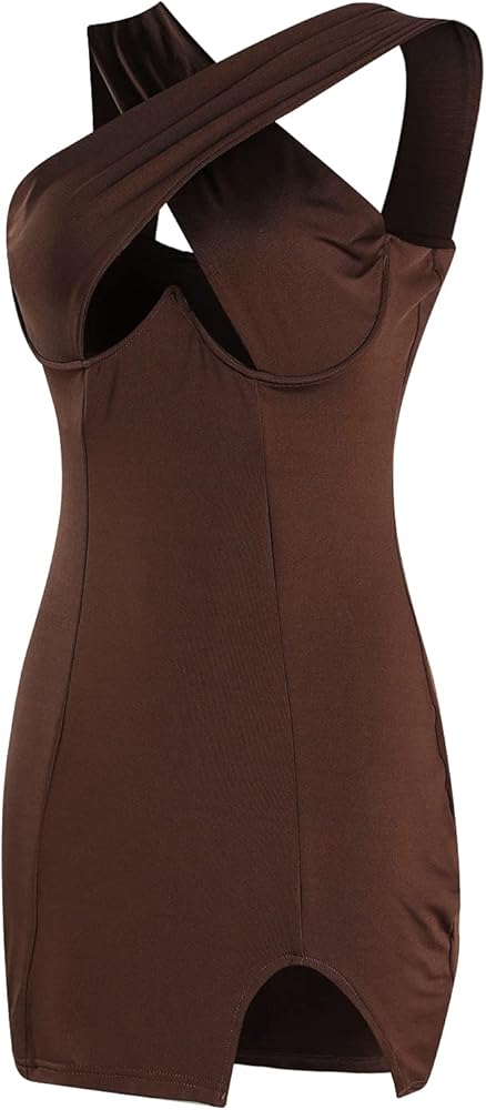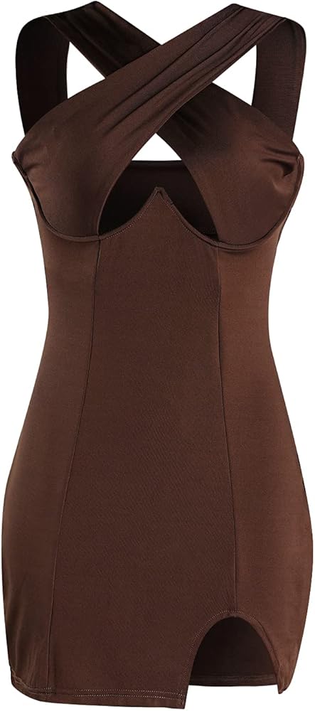 فستان نسائي متقاطع ومقطع مثير بدون أكمام، فستان ضيق للحفلات والنوادي