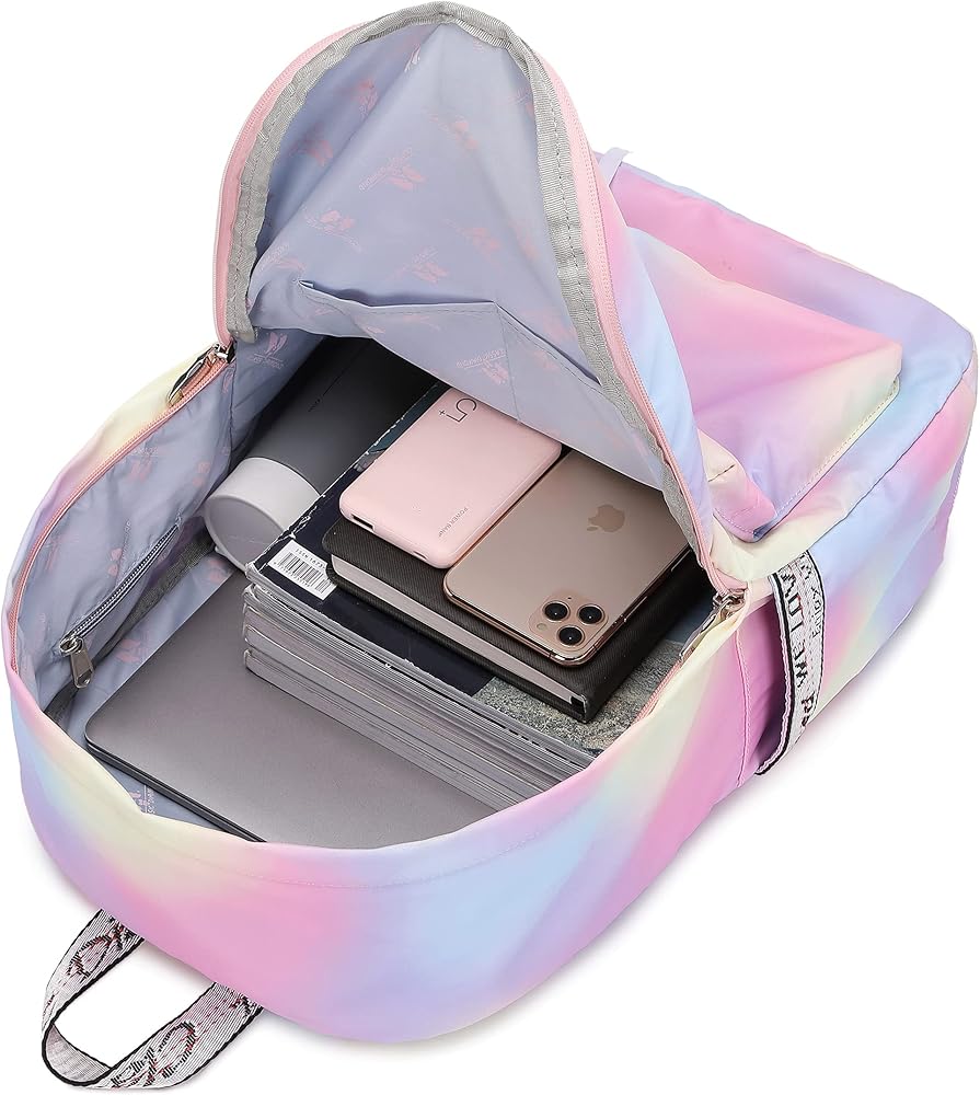 حقيبة ظهر للفتيات للمدرسة: جيب أمامي بسحاب للأغراض الصغيرة، وجيبان جانبيان لزجاجة المياه والمظلة، وحجرة كمبيوتر محمول واحدة لجهاز كمبيوتر محمول مقاس 15.6 بوصة، وجيب مخفي مضاد للسرقة في الجزء الخلفي من حقيبة الظهر لحماية أغراضك القيمة من اللصوص. مساحة واسعة كافية لاستيعاب المجلد والكتب/المجلدات المدرسية. الكثير من الجيوب ستجعل أغراضك منظمة ويسهل العثور عليها. حقيبة ظهر الكمبيوتر المحمول مثالية للأنشطة الداخلية والخارجية.