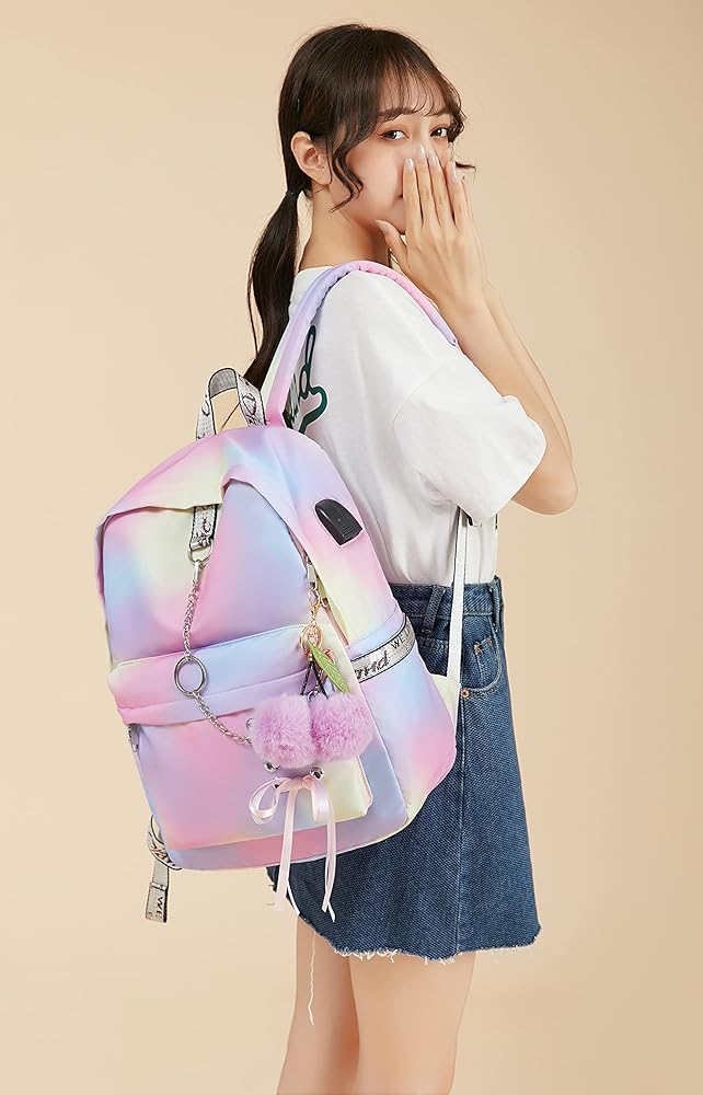 حقيبة ظهر للسفر والمشي لمسافات طويلة للنساء والفتيات المراهقات: حقيبة الكتب مجهزة بمنفذ USB خارجي، وهو مناسب لشحن أجهزتك الإلكترونية في أي وقت وفي أي مكان. ومقبس سماعة الرأس يحرر يديك عند الاستمتاع بالتسجيلات الصوتية والموسيقى. الحقيبة المدرسية متعددة الوظائف للمدرسة وركوب الدراجات والتخييم والمشي لمسافات طويلة والسفر.