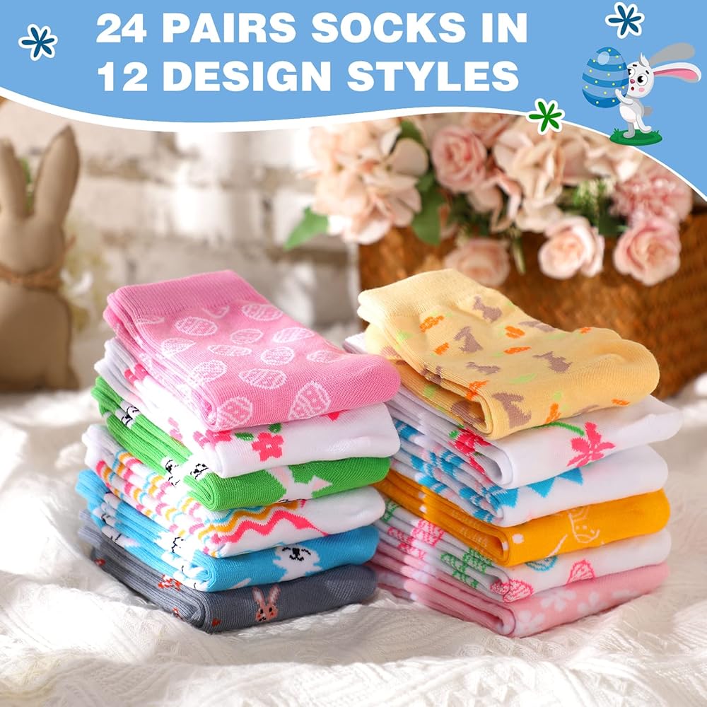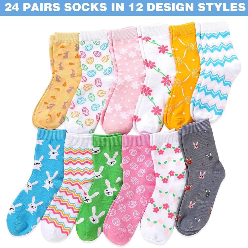 • You Will Receive: 24 pairs of Easter printed socks, 12 styles in total, so you can easily wear them interchangeably, or give them to your family and friends to express your love and create a cute holiday outfit together