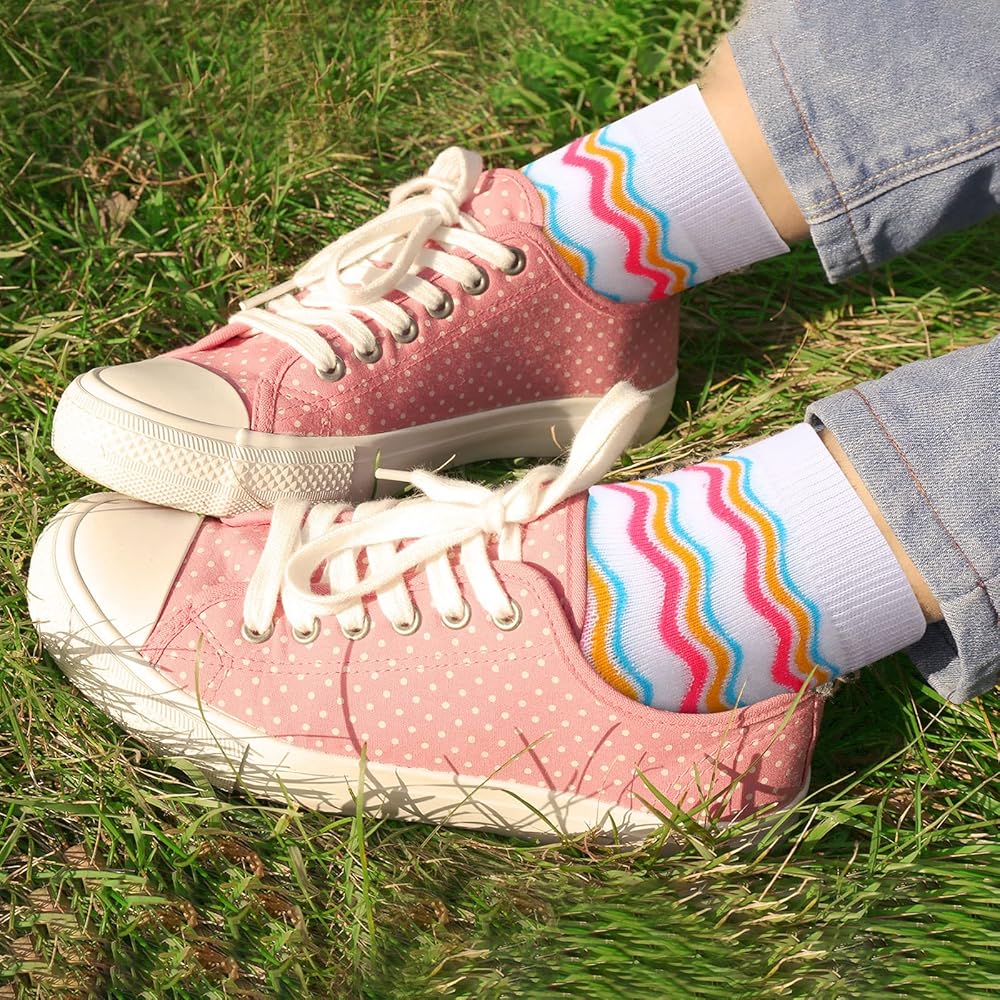 • One Size Fit Most: these adult colorful socks come is in a standard size that can fit shoe sizes from US 5-9, so ladies can enjoy these colorful, stylish, and funny socks; Please do not iron them and suggesting wash them by hand, the quality women socks require the proper care