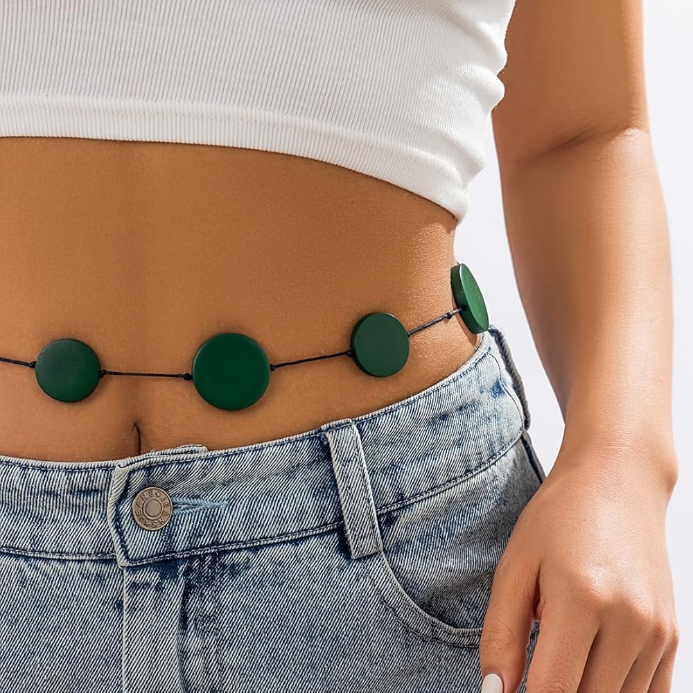 - يمكن مطابقة حزام القرص الخشبي الكبير باللون الأخضر البوهيمي مع الفساتين والقمصان والسترات والبيكيني وما إلى ذلك. لجعل ملابسك أكثر تميزًا.