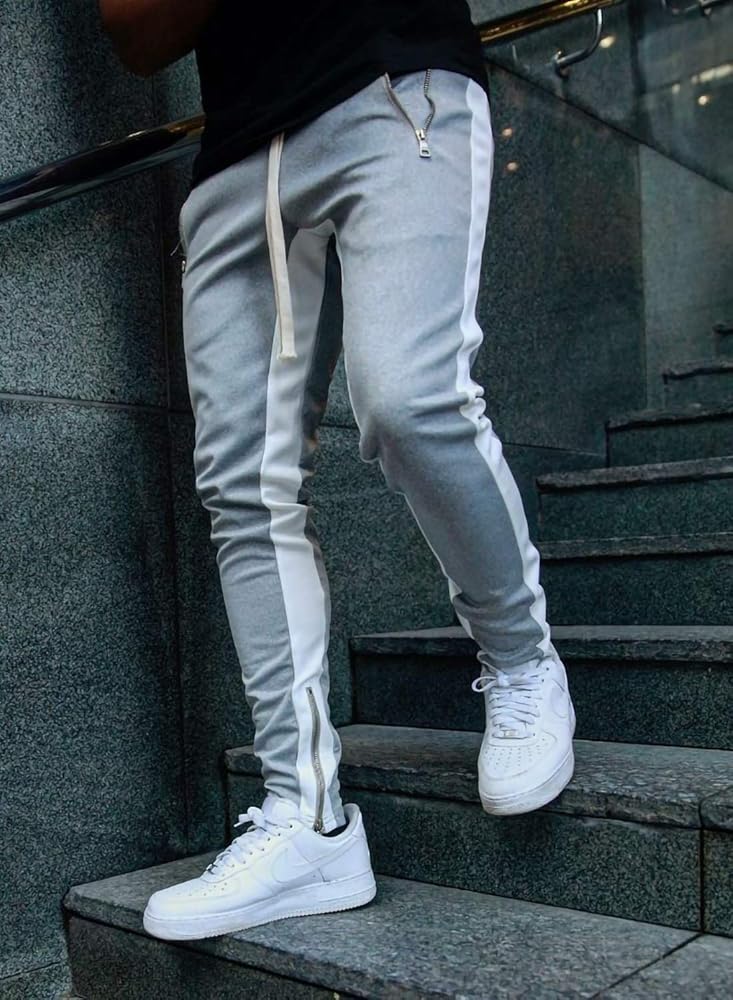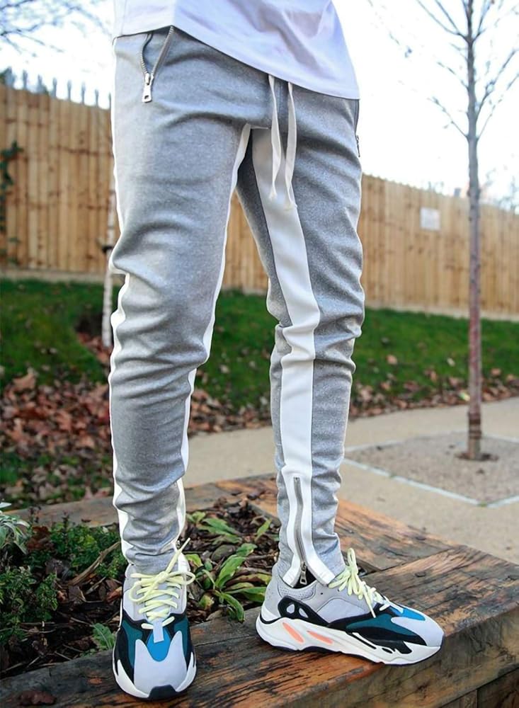 بنطال رياضي رجالي برباط للركض والتمارين الرياضية مع جيوب بسحاب