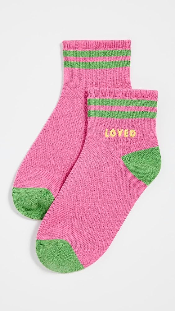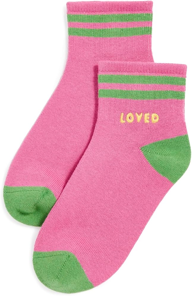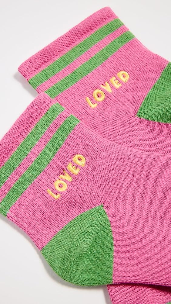 - حروف مطرزة "Loved"، نمط مخطط متباين، جوارب دائرية
