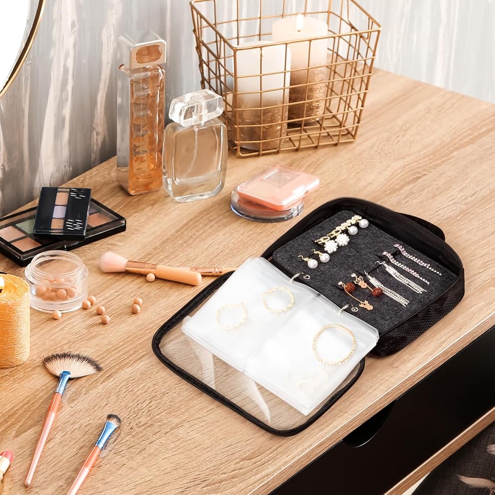SEE-THROUGH AND DELICATE JEWELRY BOOK ORGANIZER BAG SET This travel jewelry organizer bag is made of Durable Pvc material and Considering that the fully transparent material is not resistant to dirt, we have chosen frosted material for these loose-leaf page bags. Although they are made of frosted material, it is still relatively easy to see what the jewelry inside the bag is. There is no need to worry about searching for your jewelry in the bag. The visible function makes it very easy for you t