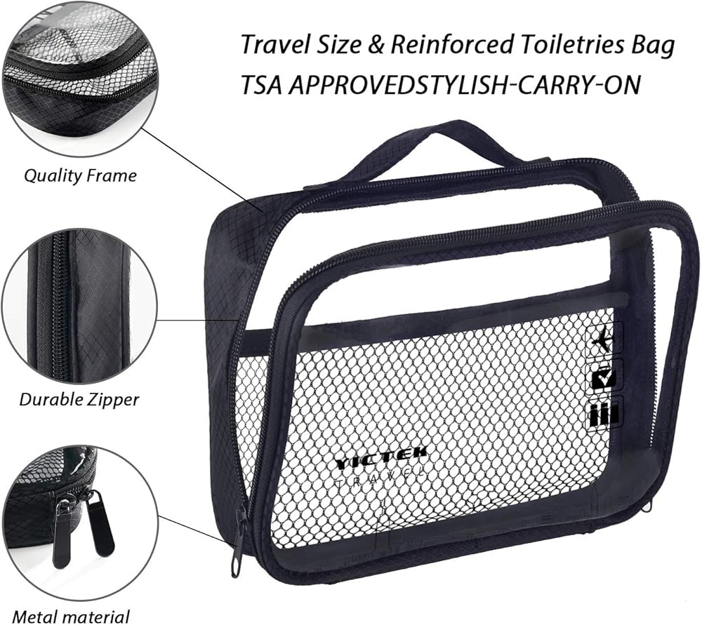 DURABLE CLEAR TOILETRY BAG,STAY ORGANIZED:this quart clear zip top toiletry bag is transparent , made of premiere clear PVC material, portable to hold all your travel sized kit when you are on airplane, perfect for keeping your shampoo and conditioner, cosmetics, small toiletries, and liquids in one place.