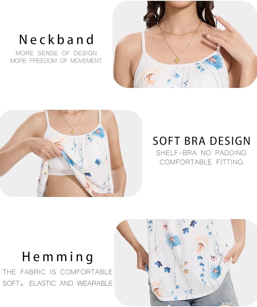 ❤تصميم فضفاض: القميص الداخلي النسائي الخاص بنا مع حمالة الصدر المدمجة ينتمي بشكل عام إلى الإصدار الفضفاض، ليس فقط بمقاس عادي ولكن أيضًا بمقاس كبير، يمكن لأي شخصية نسائية التعامل معه وارتداؤه بشكل مريح للغاية. بالإضافة إلى ذلك، هذا المقاس الفضفاض المتدفق Cami'strps قابلة للتعديل، يمكنك تعديلها بحرية لتناسب مقاسك الأكثر راحة!