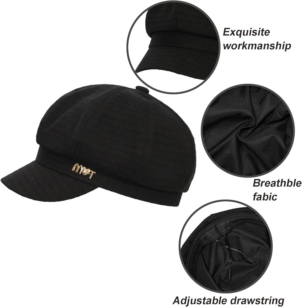 【Fashionable Classic】: Unique 8-panel vintage paperboy cap for women ,square eaves design is both novel and fashionable, highlighting the classic and beautiful style, while the cap itself is comfortable, breathable, lightweight, and keeps your head dry.