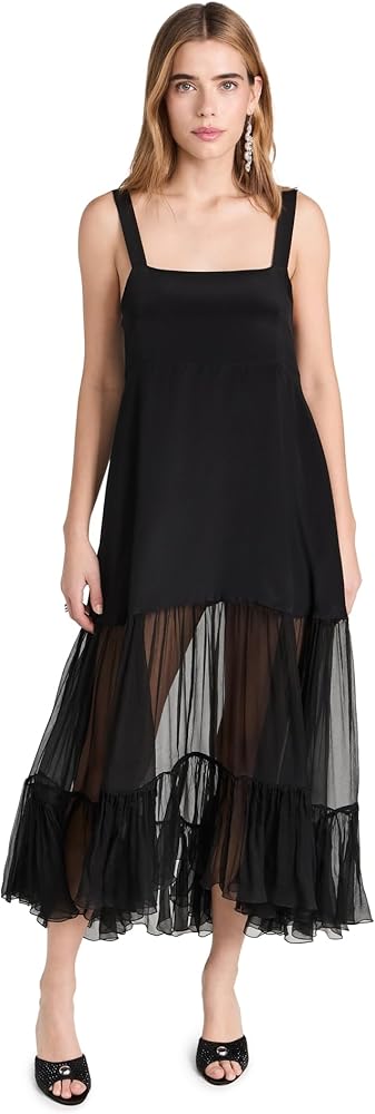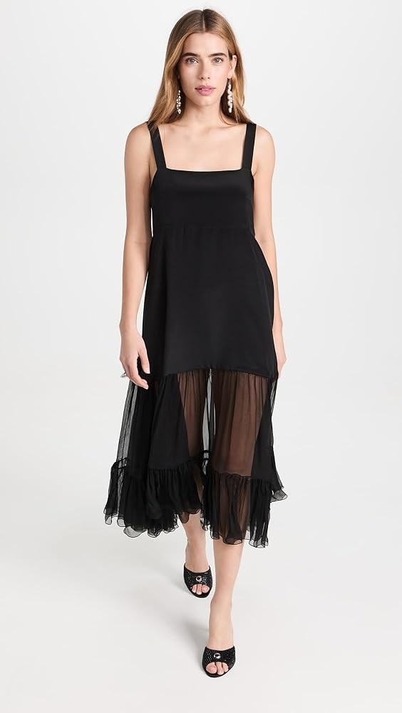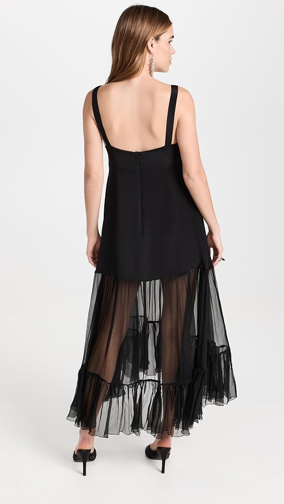يعمل حسب الحجم. ، مصمم بصورة ظلية على شكل حرف A وحاشية مرتفعة ومنخفضة. يناسب فسيح في التمثال النصفي. تتميز صدرية الكريب الحريري بملمس ناعم وبارد، كما أن حاشية الشيفون ذات ملمس جيد التهوية. يوصى باستخدام شريط الموضة لتأمين أحزمة الكتف.