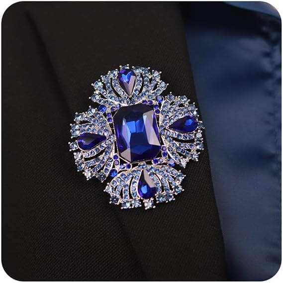 بدلة رجالي من Kercisbeauty باللون الأزرق الكبير دبوس بروش كريستال العريس مناسبة خاصة مجوهرات الحفلات للجنسين من القماش