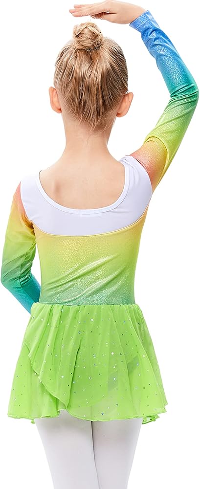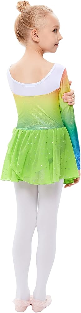 تصميم حيوي: كم طويل مع تنورة توتو لامعة بتصميم طباعة لامعة، وحزام خلفي متقاطع، تصميم خاص وحيوي ومرن ومتأرجح وفريد من نوعه. لجعل حلم أطفالك يرقصون حقيقة. ساحرة، مجرد فتاة أميرة راقصة.