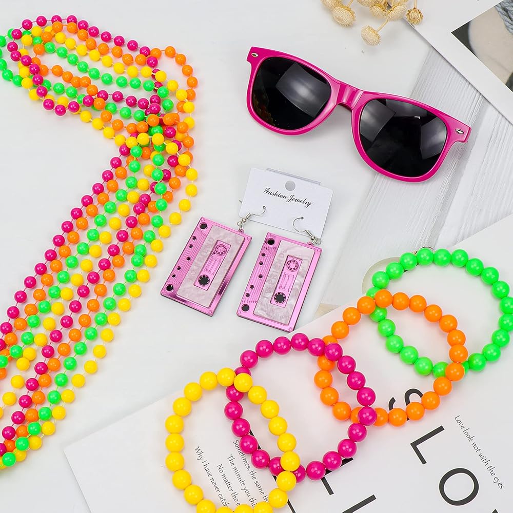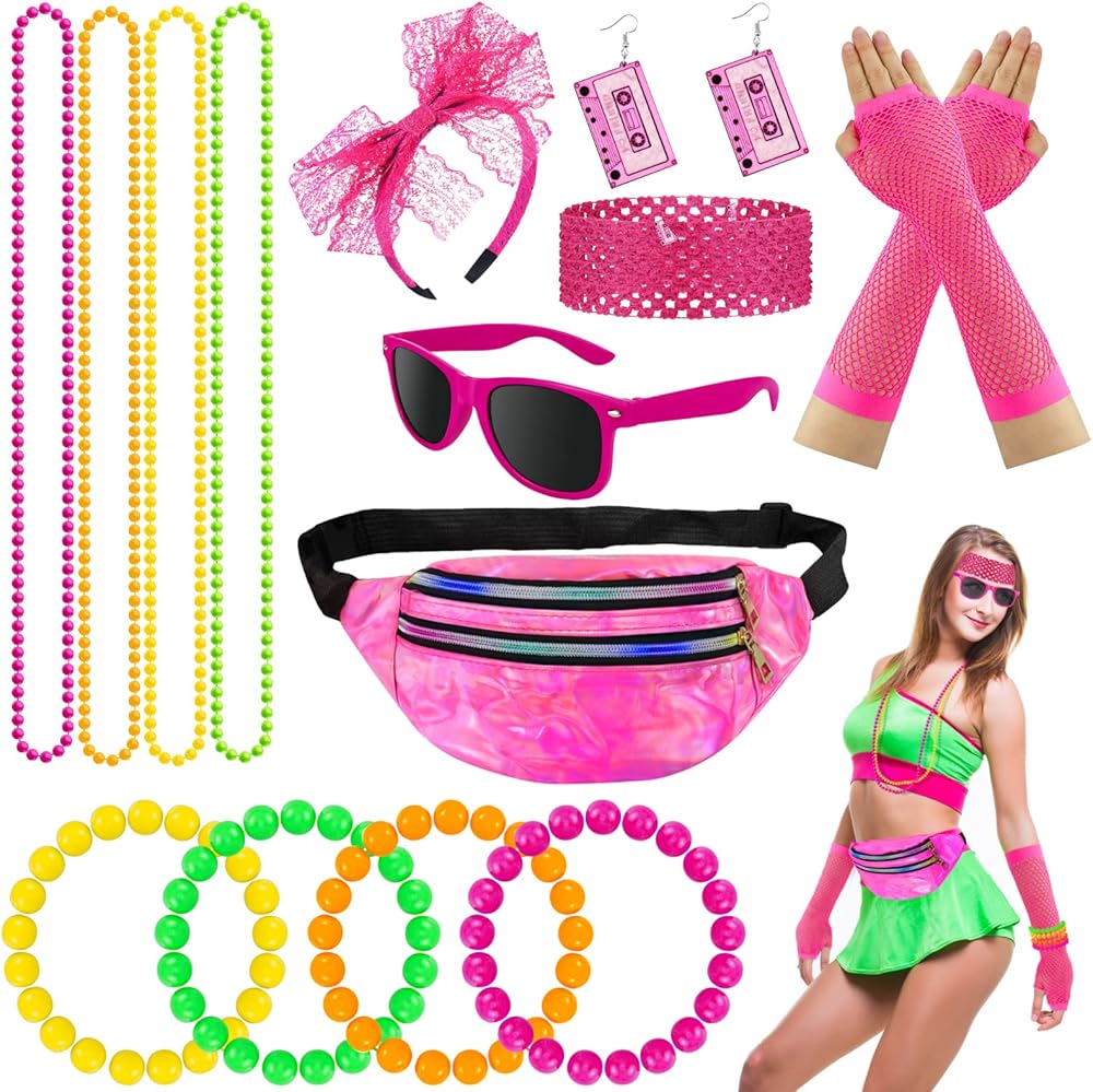 مجموعة متنوعة من الألوان الزاهية - أزياء الثمانينات هذه للنساء مع إكسسوارات ملونة مصممة للأشخاص الذين يعشقون الطراز القديم. مجموعة أزياء الثمانينات ملونة، تجعلك تبدو مشرقة ومتحركة عند ارتداء هذا الإكسسوار.