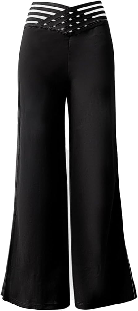 SOFIA'S Choice بنطال نسائي واسع الساق متقاطع عالي الخصر بالازو