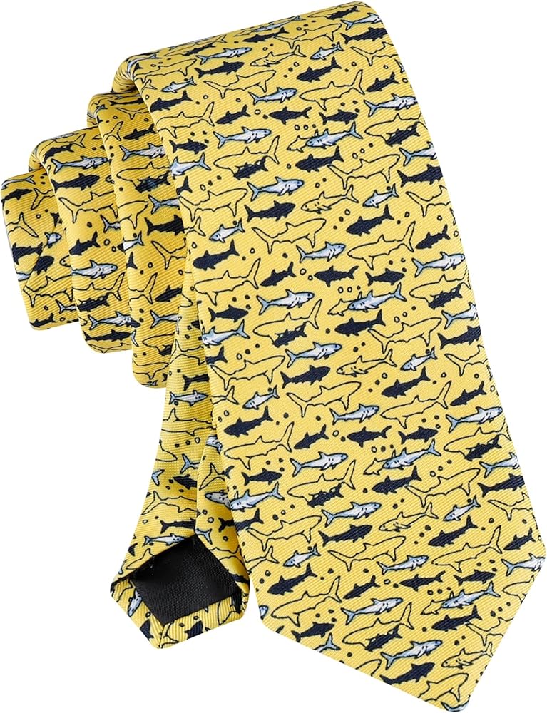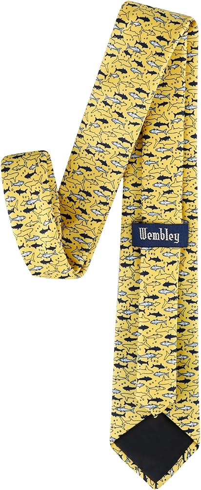 طراز كلاسيكي: ارفع خزانة ملابس طفلك الرسمية مع ربطة العنق النحيفة هذه بنمط سمكة القرش من ويمبلي. القماش المنسوج الناعم يجعله مريحًا للغاية بالنسبة له لارتدائه طوال النهار والليل.