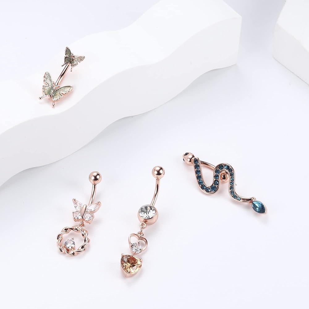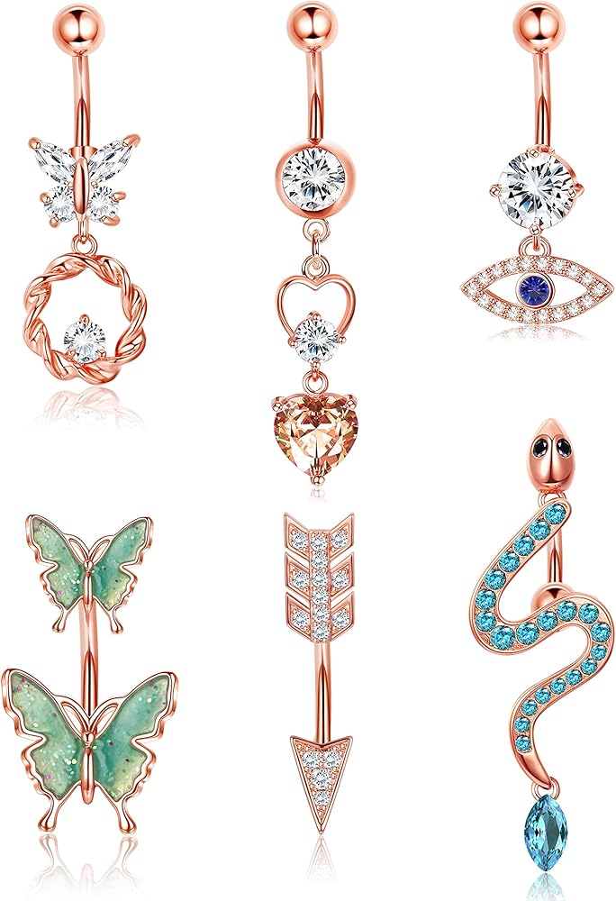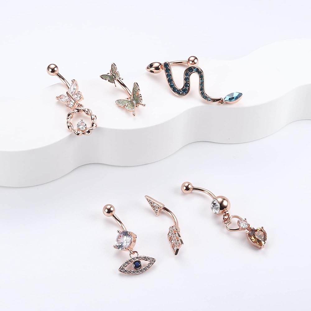 dochais البطن زر الدائري، حلقات البطن الفولاذ الجراحية للنساء الفولاذ المقاوم للصدأ تتدلى تألق تشيكوسلوفاكيا البطن ثقب المجوهرات فراشة ثعبان عين الشر السهم ثقب المجوهرات الذهب