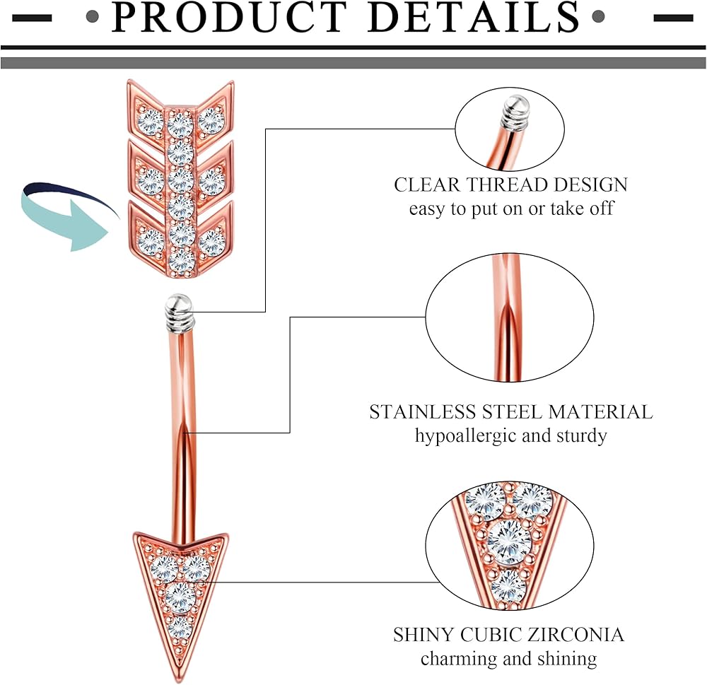 • مقياس الحجم الشائع-14 جرام (1.6 مللي متر). طول الشريط: 3/8 بوصة (10 ملم). من السهل إدخال وخلع مجوهرات ثقب زر البطن.