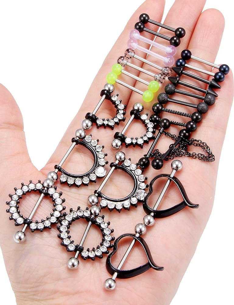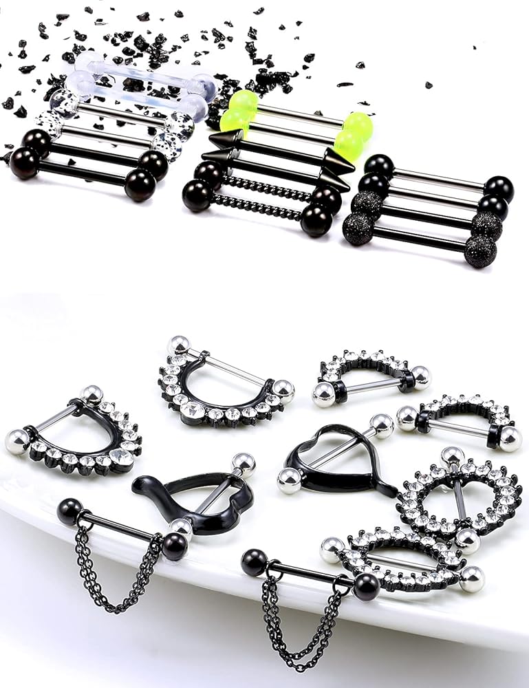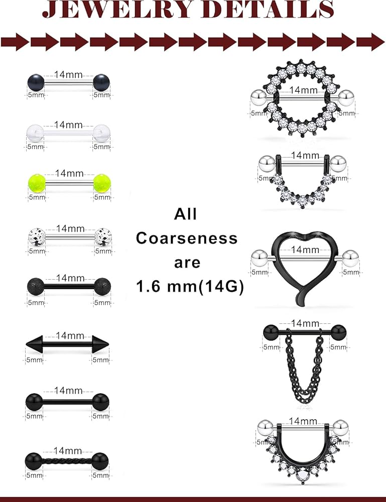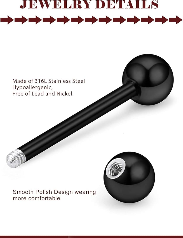 حلقات الحلمة متعددة الوظائف، حلقات اللسان، سطح أملس مصقول للغاية، معدن مريح للغاية ويمنع الضرر والتهيج للثقب الخاص بك، مثالي للاستخدام اليومي. خيط لولبي خارجي ممتاز، يتم تثبيته بإحكام وإيقافه بمرونة.