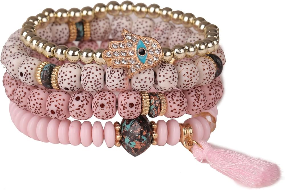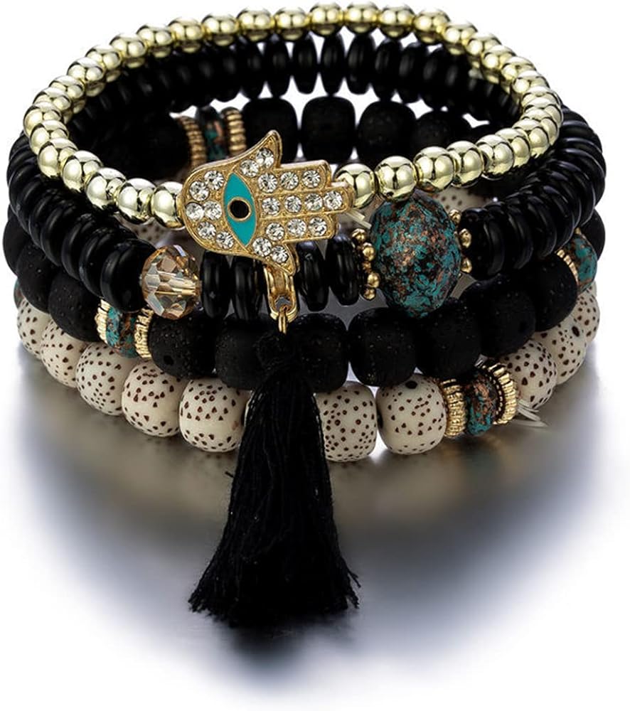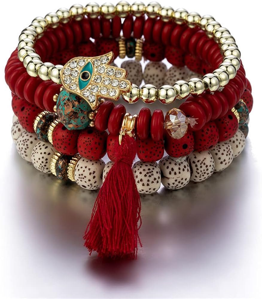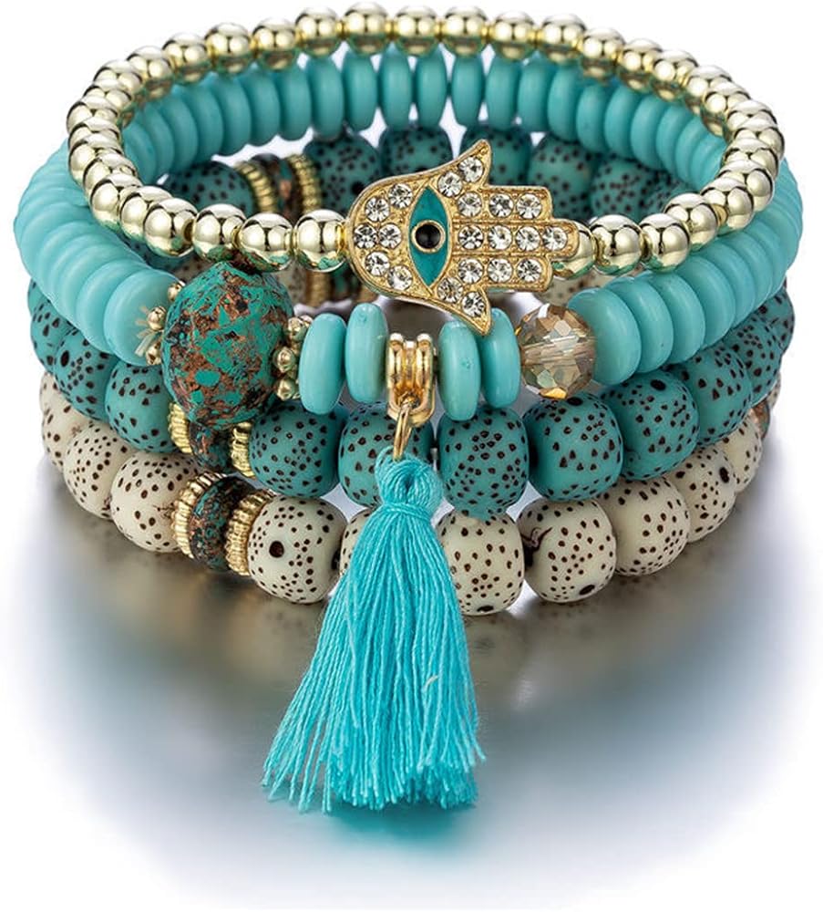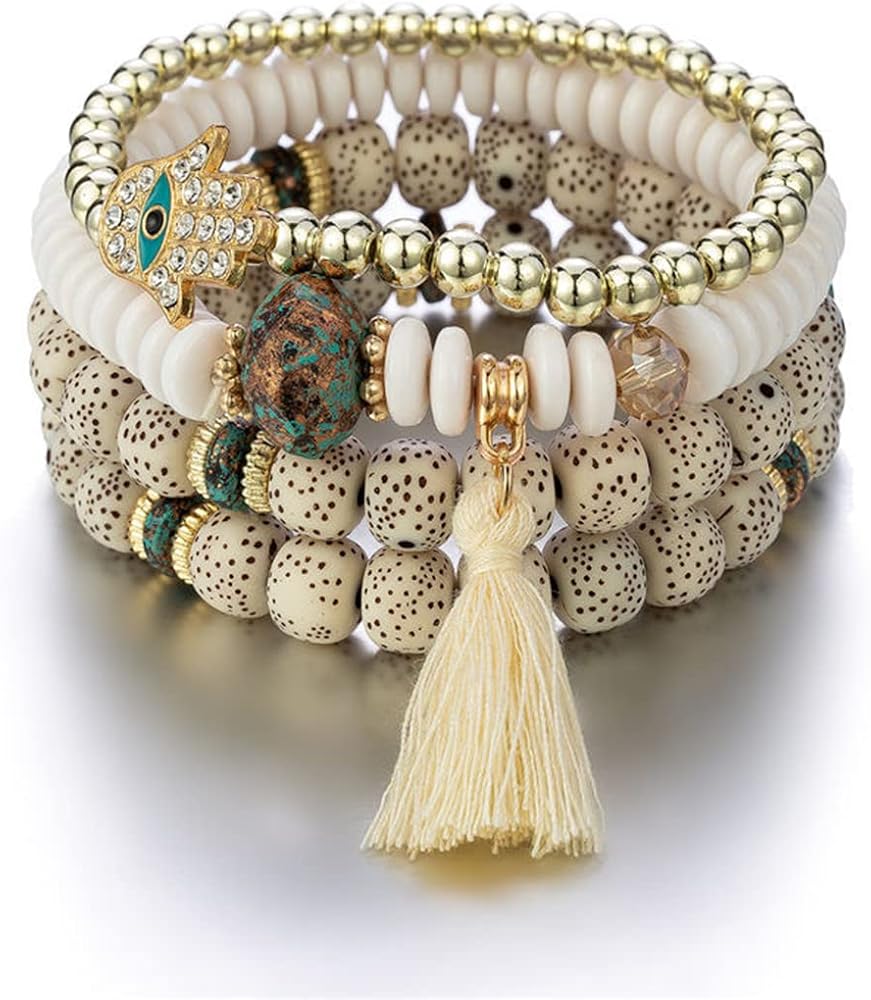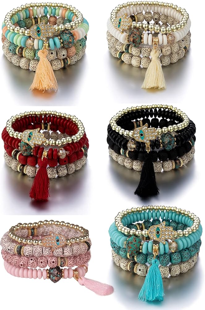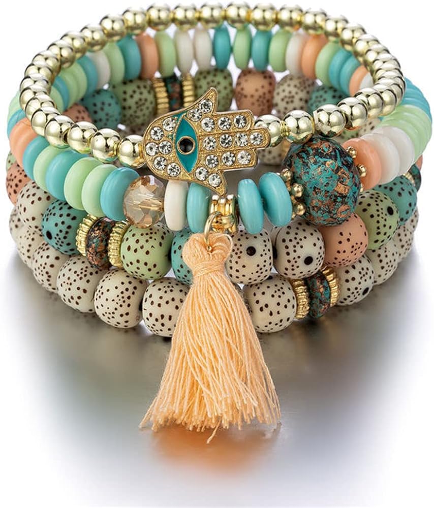 ❤مجموعة أساور بوهيمية قابلة للتكديس❤ طلب واحد يحتوي على أساور متعددة مصنوعة يدويًا، ستضيف الخيارات المتعددة المزيد من السحر والانتعاش إلى ملابسك اليومية. مصنوعة من خرز ملون، وسبائك صديقة للبيئة وشرابة ناعمة، صديقة لجسمك، مما يمنحك تجربة مريحة.