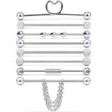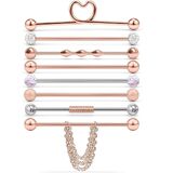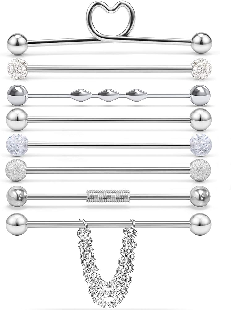 مجوهرات ثقب الحديد الصناعية من سيرينج 14 جرام من الفولاذ المقاوم للصدأ الغضروف اللولب محارة 1 1/2 بوصة (38 ملم) سلسلة قلب للنساء والرجال 8 قطع