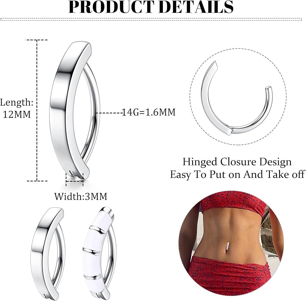الحجم القياسي--حلقات زر البطن 14 جرام، مقاس ثقب البطن الشائع. يناسب معظم المراهقين البالغين. سمك الشريط: 14 قياس (1.6 ملم)