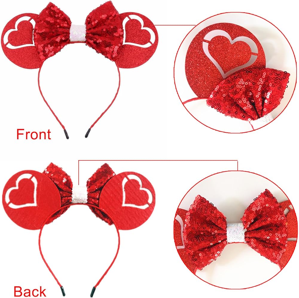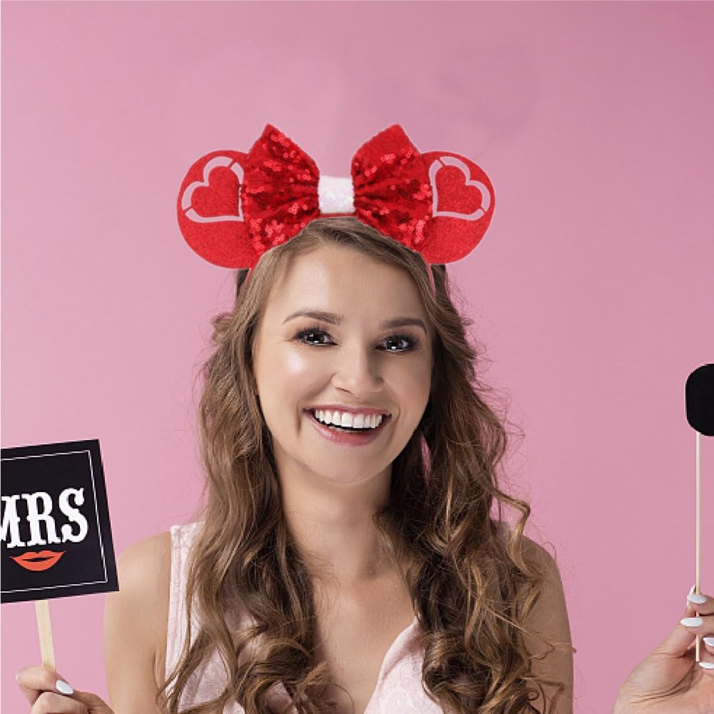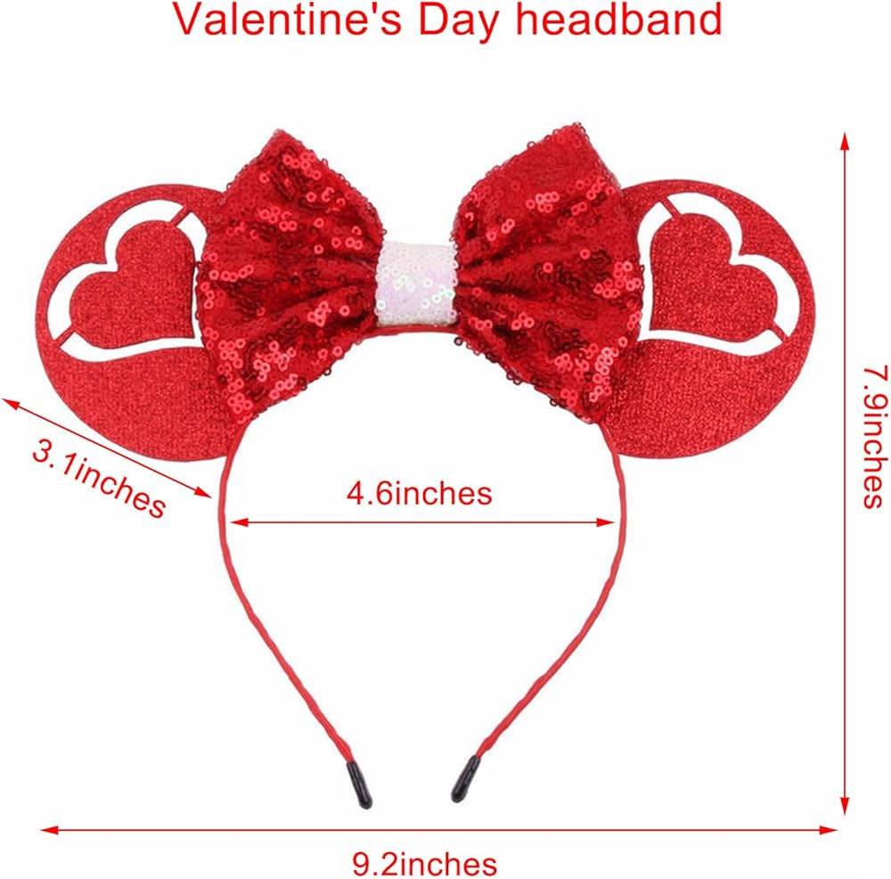 Kiddale عيد الحب عيد الحب عقال، الأحمر القلب الترتر الفأر الأذن الشعر الأطواق للنساء الفتيات، الحب إكسسوارات الشعر زي تأثيري أغطية الرأس لعيد الحب الديكور الذكرى السنوية للزفاف
