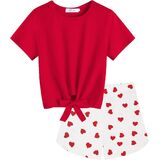 • المزايا: تصميم بسيط برقبة دائرية، لون أساسي ثابت، تي شيرت منقوش لطيف بأكمام قصيرة مع ربطة أمامية وسروال قصير منقوش. السراويل القصيرة ذات تصميم خصر مرن تجعل الأطفال أكثر راحة وراحة.