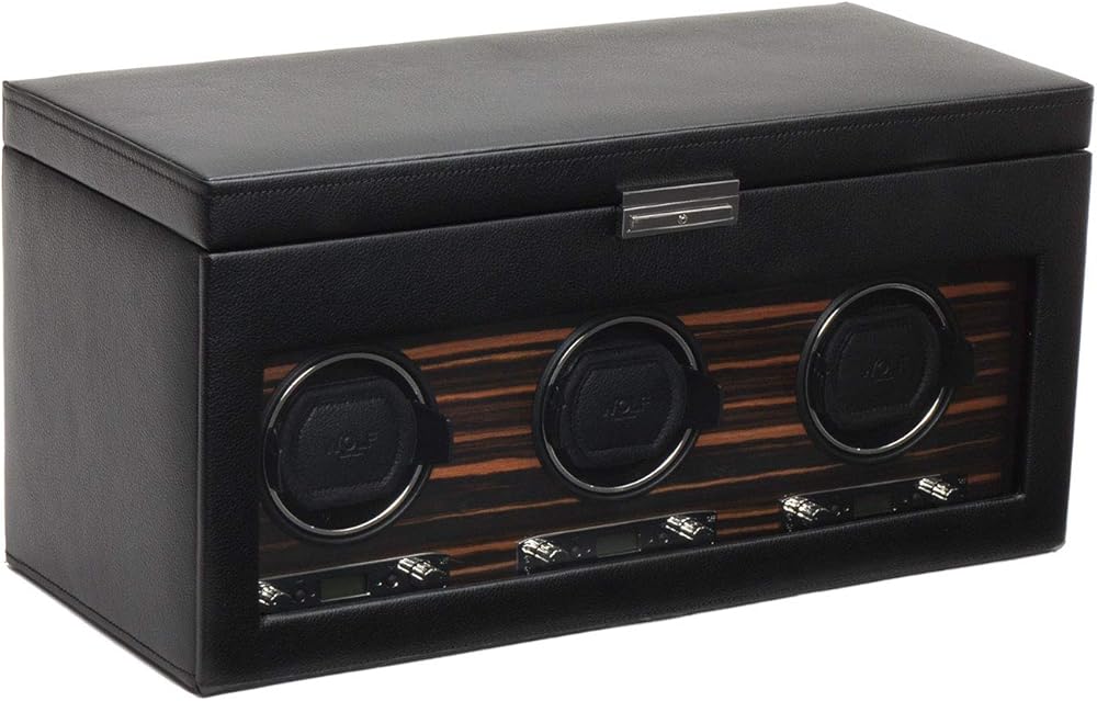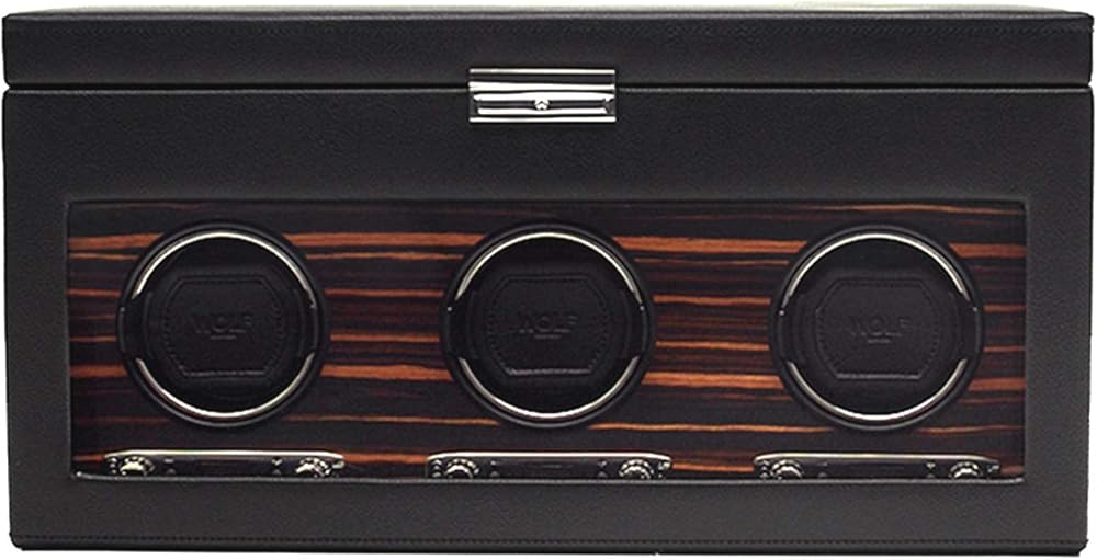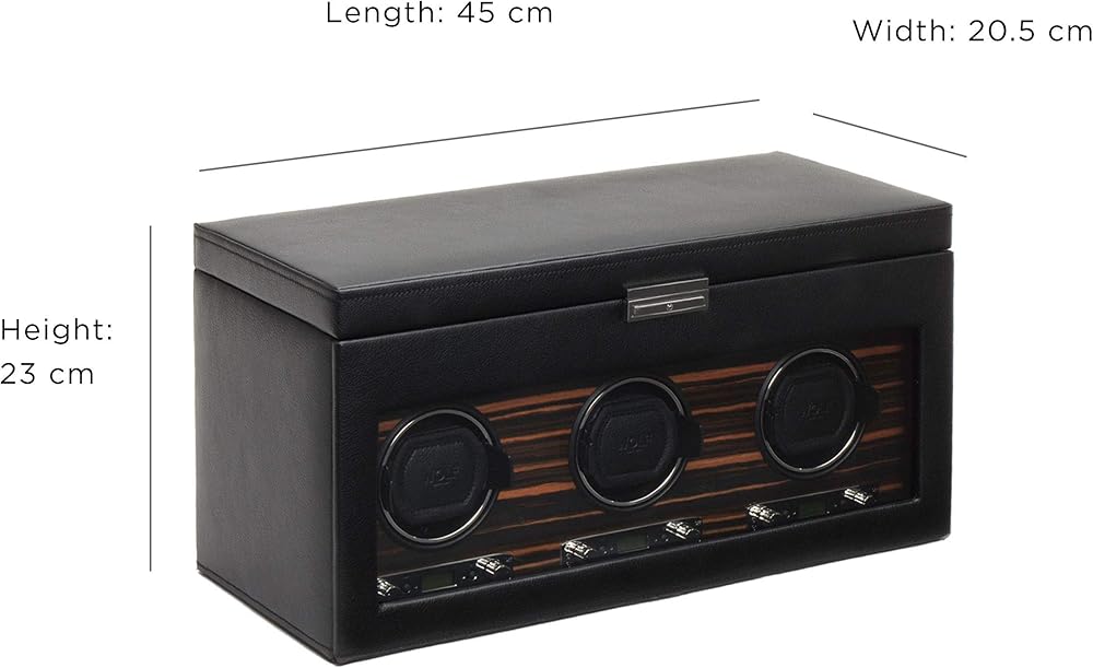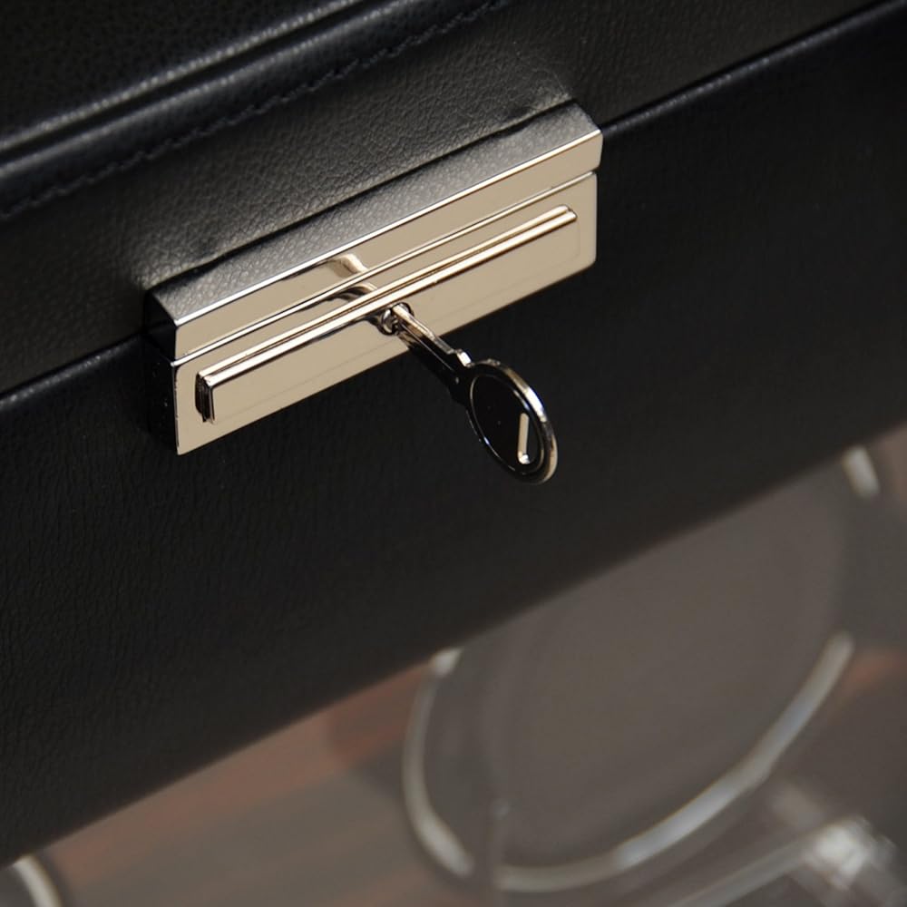 ملفاف ساعة WOLF Roadster مع مساحة تخزين، أسود - ملاءمة آمنة مع أساور ديناميكية حاصلة على براءة اختراع - جميع أحجام المعصم - غطاء من الجلد النباتي والزجاج - يتضمن محول عالمي