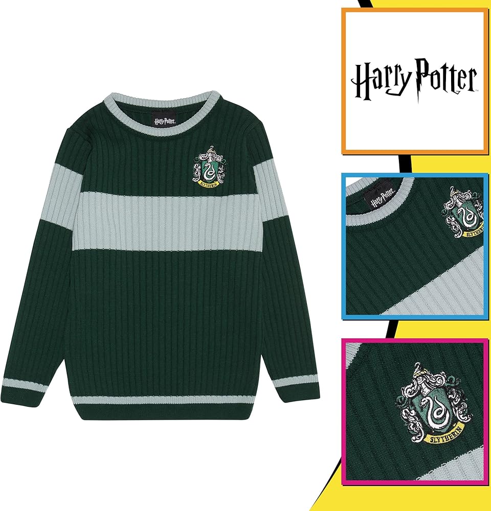 أي منزل أنت؟ تُظهر هذه القطعة من بضائع هاري بوتر الرسمية شعار سليذرين الأيقوني من ملحمة هاري بوتر الكلاسيكية على سترة محبوكة مرخصة رسميًا للأولاد تأتي هذه السترة المحبوكة المرخصة رسميًا للأولاد بقصة عادية وأكمام طويلة ورقبة دائرية ضيقة. تتميز هذه السترة بقماش مريح من خيوط الأكريليك بنسبة 100%، ويمكن غسلها في الغسالة. بوب جير هو متجرك الشامل لتلبية جميع احتياجاتك من البضائع والملابس الشخصية - نحن ملتزمون تمامًا بتزويدك بمنتجات عالية الجودة ستحبها.