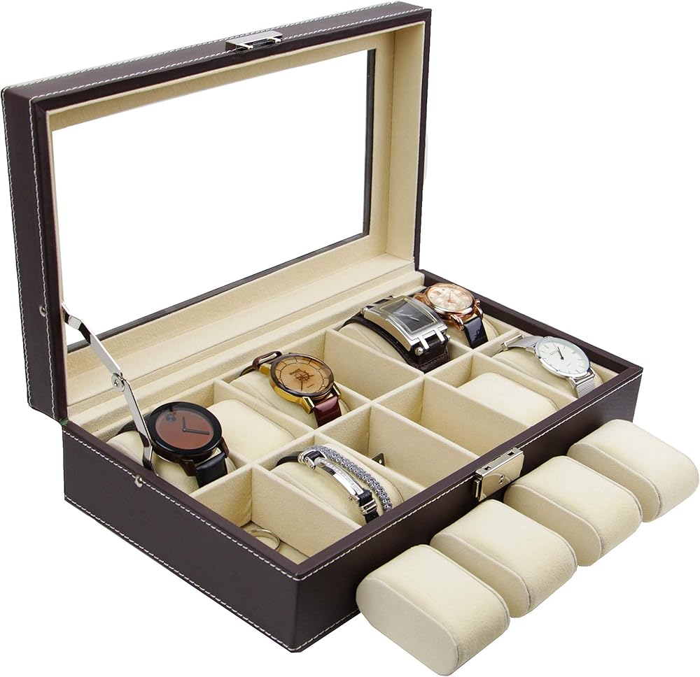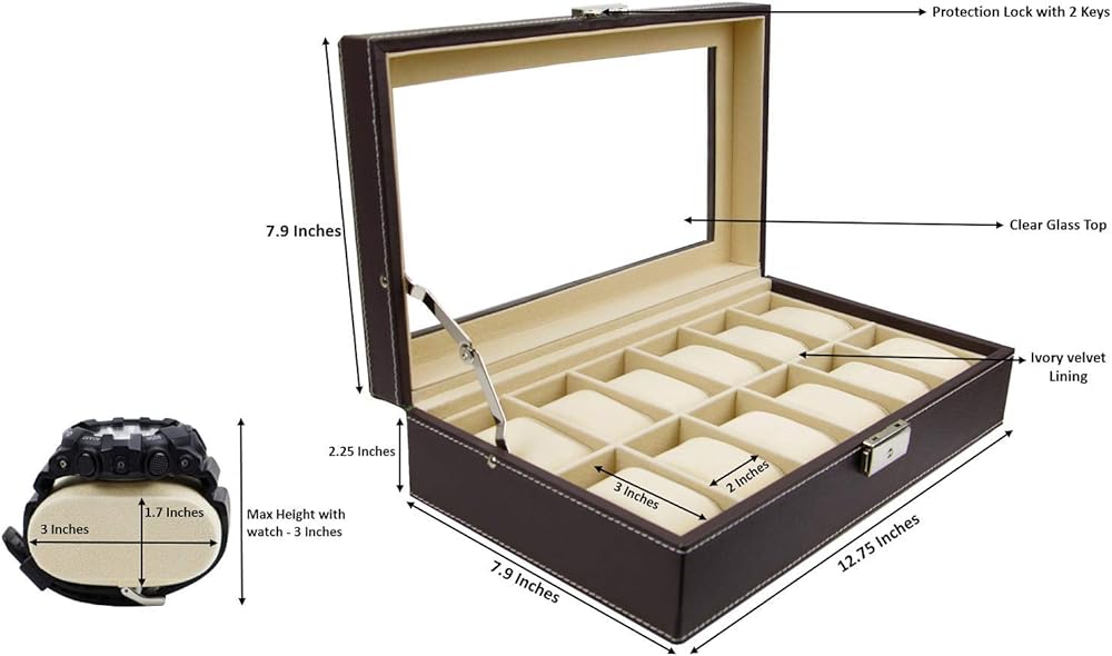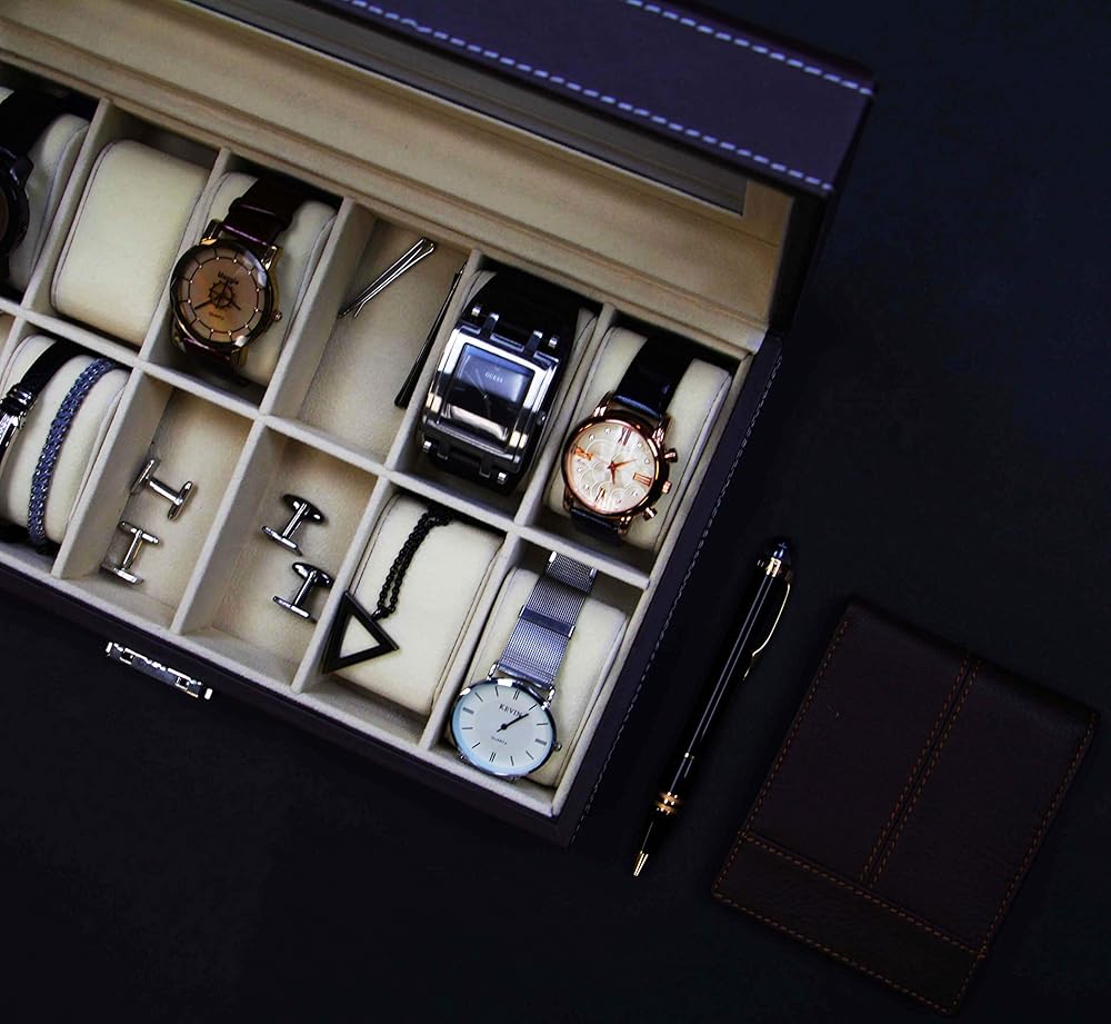 الإكسسوار المثالي لمجموعة ساعاتك، يتميز منظم الساعة هذا أيضًا بجزء علوي زجاجي متين يسمح لك برؤية ما بداخلها.