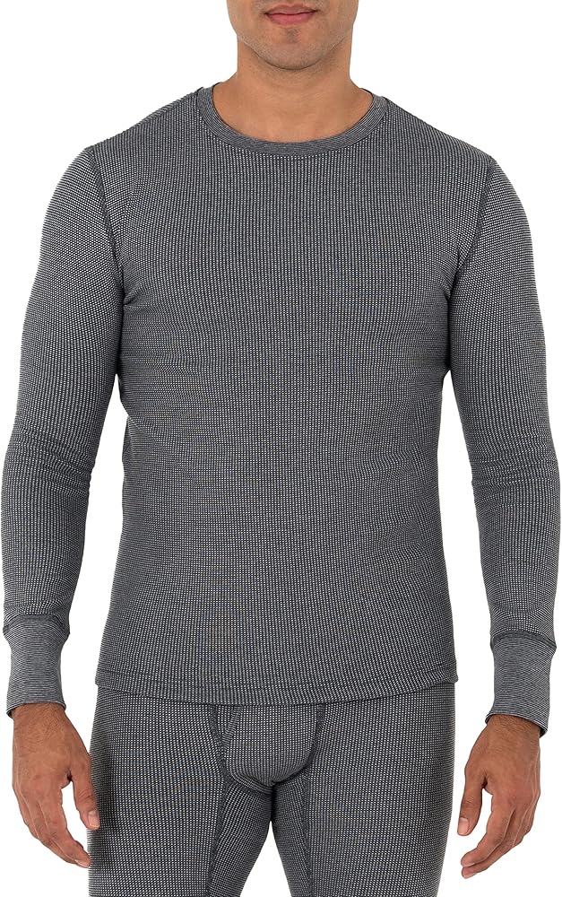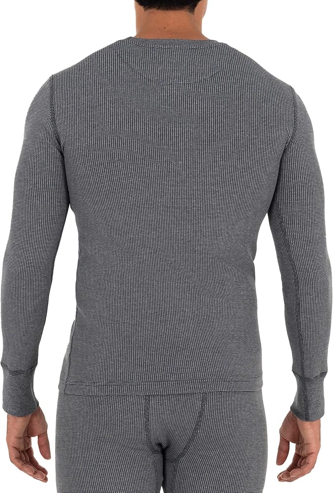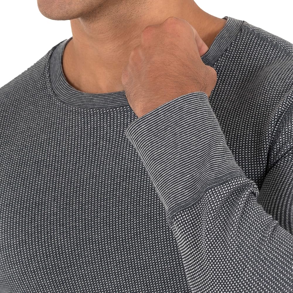 تي شيرت حراري بأكمام طويلة ورقبة دائرية ضيقة من قماش وافل صغير ناعم مصنوع من القطن الأمريكي والبوليستر المعاد تدويره